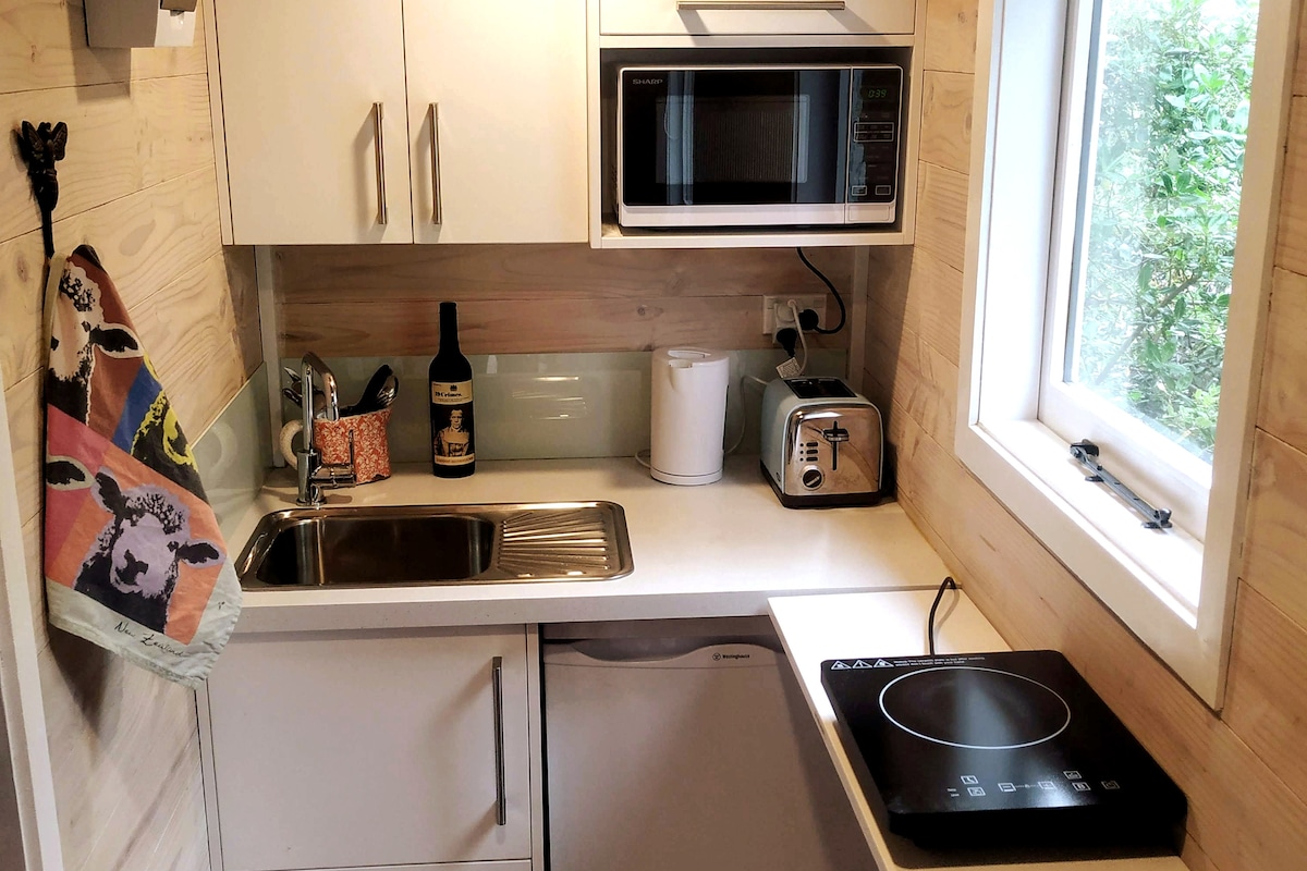 Inspired by the tiny house movement, the cottage packs a big punch. Constructed with native timbers, Plum Cottage integrates beautifully with the landscape. The cottage is privately nestled amongst the plum trees and gardens. Feel free to pick some tomatoes or a juicy plum! Summer sunsets are lovely. Located on the Tahunanui hillside with views to the distant mountains. It is an easy 1.3 km walk to the beach (15 min) or 5 min drive. CBD is 6km away (12/15 min drive). Bus stop is 13m walk.
