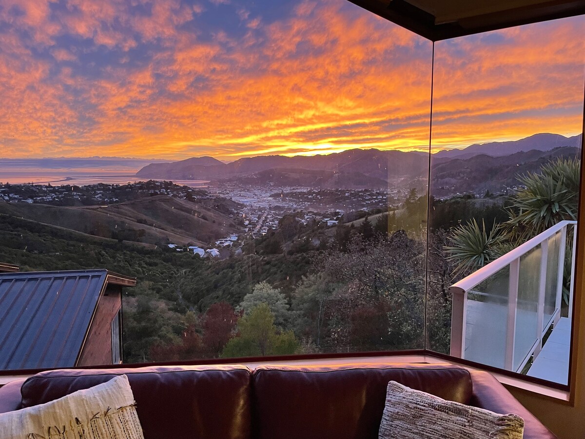 An eclectic mix of old and new marries together to create a well-equipped 'home away from home', with expansive views across Tasman Bay. Whether you seek a tranquil place to unwind or a base to explore the surrounding area, this house caters to it all!