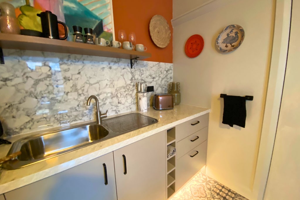 Situated under ten minutes drive to City, Beach, Golf Course, Airport. Overlooks the sea, mountains, beach. The Commodore Suite, situated on the entrance level of our house, is sunny, very warm, light and airy. One bedroom, bathroom, living area & kitchenette with 2 hobs, microwave, slow cooker, air fryer and bench top grill. BBQ available on the upper deck as is use of that deck. Washer and dryer available in our living area which guests always welcome to use. Not suitable for children.