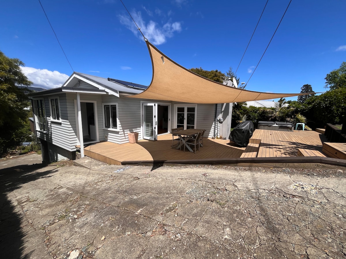 Warm, light, 2-bedroom home on the Maitai river, with the most gorgeous panoramic view from the upstairs master bedroom. So quiet, so central, so sweet. Breakfast, badminton and barbecue by the river. Arguably the most peaceful central street in Nelson City. A safe peaceful base to come home to within walking distance of all that Nelson City has to offer.