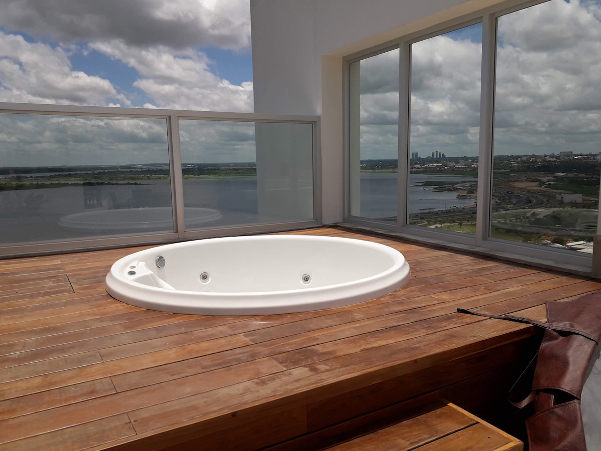 平均评分 5 分(满分 5 分),共 24 条评价豪华公寓,靠近Paseo La Galería,游泳池和按摩浴缸