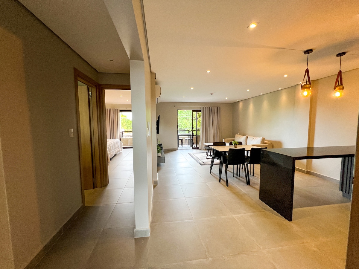 Departamento súper equipado en zona residencial, con balcón y parrilla, hermosa vista y amenities premium: - Piscina con solarium - Piscina climatizada - Sauna - Gym en altura - Rooftop + Quincho - Laundry - Seguridad 24hs - Cochera Excelente ubicación: - A 7 minutos del Eje Corporativo, Shopping del Sol y Paseo La Galería - A 10 minutos de la Costanera y el Puente Héroes del Chaco - A 15 minutos del Aeropuerto Silvio Pettirossi Cuenta con Wi-Fi, Smart TVs y colchones firmes de alta densidad