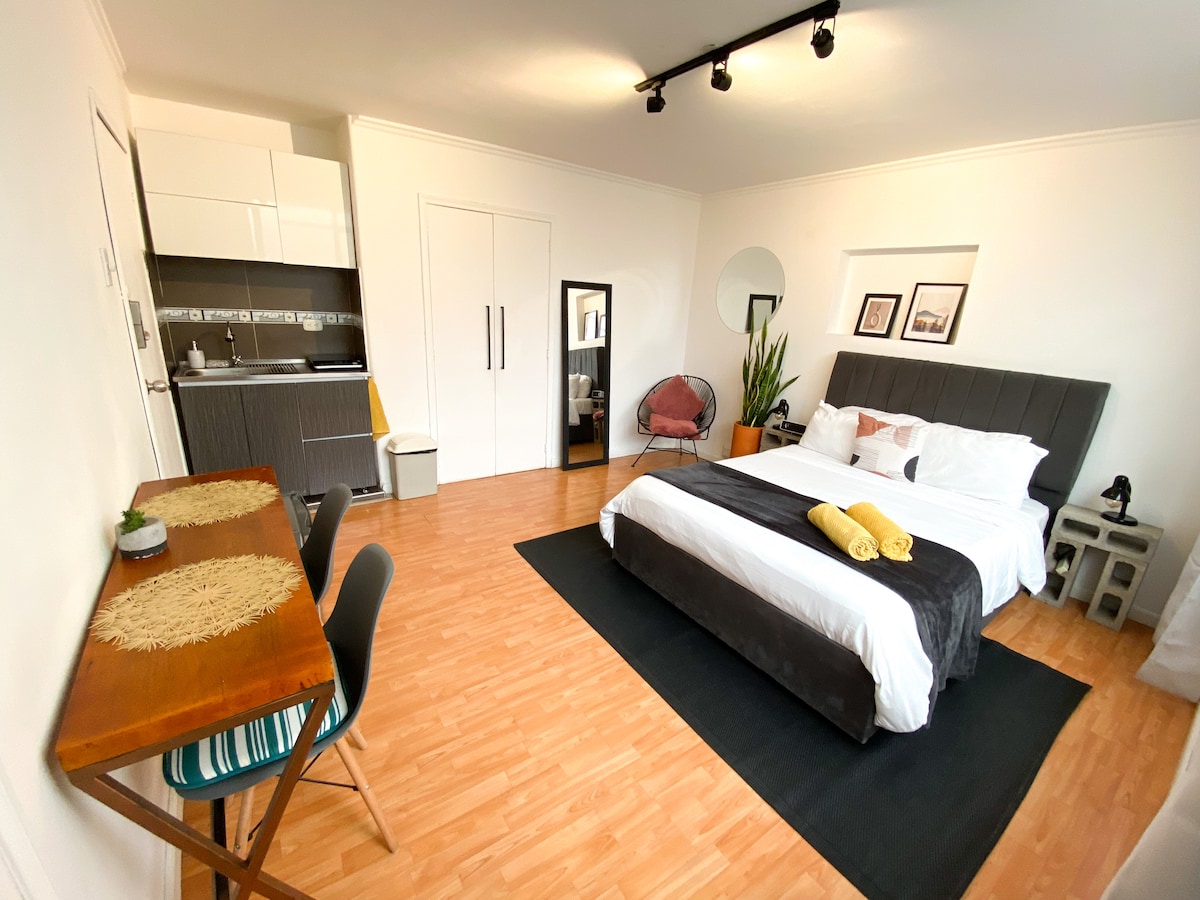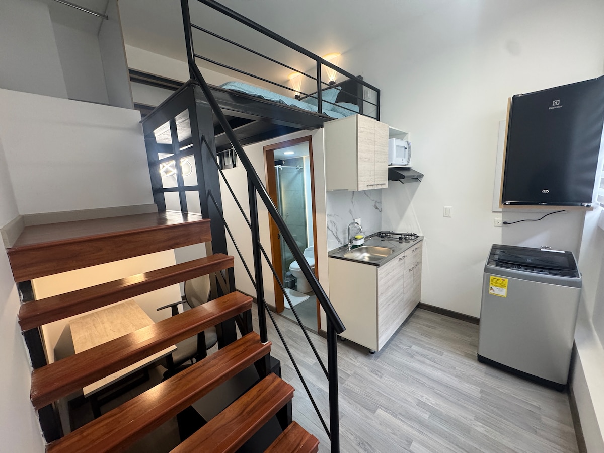Relax in a modern and cozy loft — spotless and equipped with everything you need to feel at home. It features fast WiFi, a fully equipped kitchen, and a very comfortable bed, ideal for short or long stays. The building includes a shared rooftop terrace with an urban view, coworking spaces, and 24/7 reception. Located in Chapinero, a central and well-connected area of Bogotá. You’ll find great cafés, restaurants. Attentive and friendly communication throughout your stay.