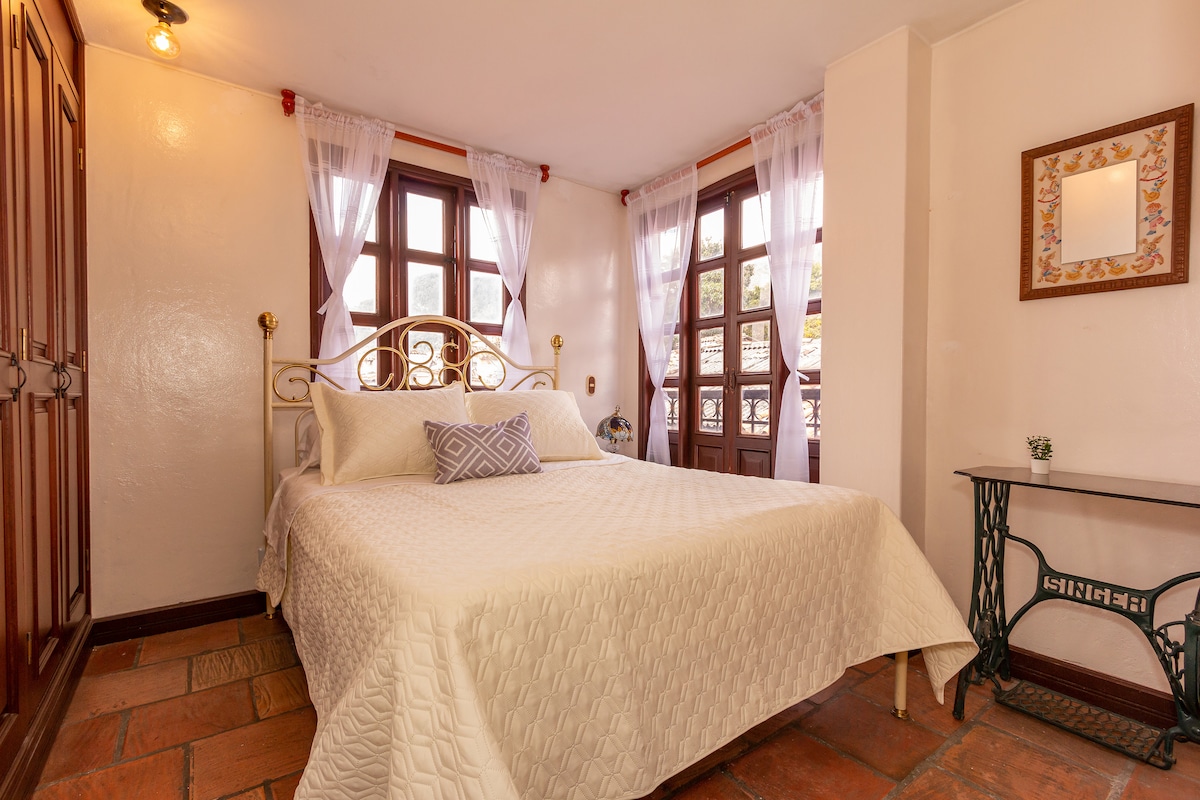 Experience the magic of Bogotá’s Historic Center in this stunning colonial home. Enjoy a King room with jacuzzi and views, a cozy Queen room with large bathroom, and a spacious living room and kitchen. The sofa bed sleeps 2 additional guests, and we have extra mattresses available in case of need. Relax in beautiful patios, sunbathe, work, or enjoy a BBQ.