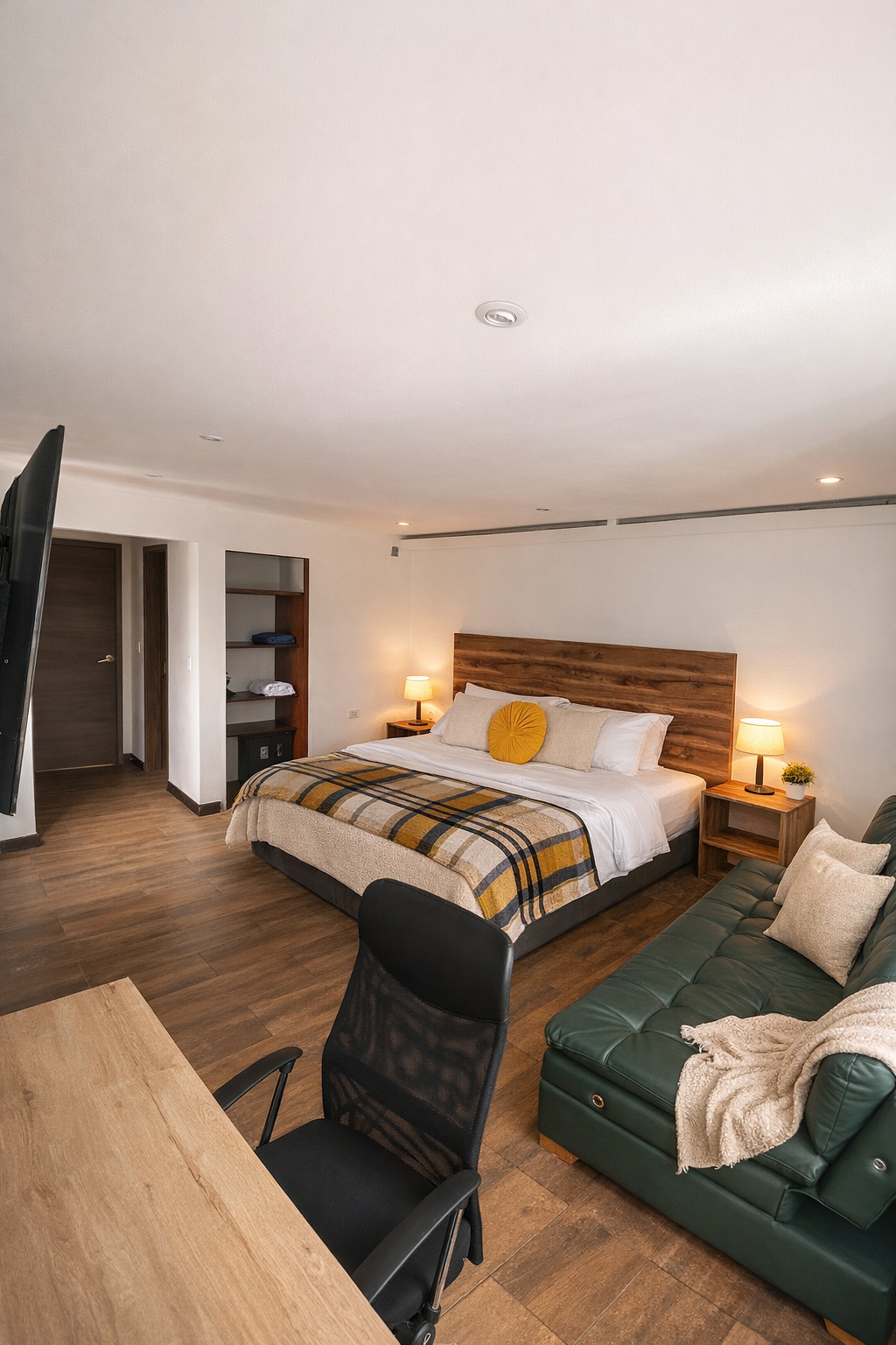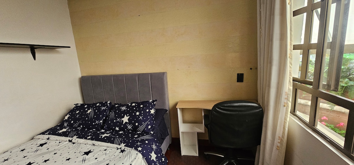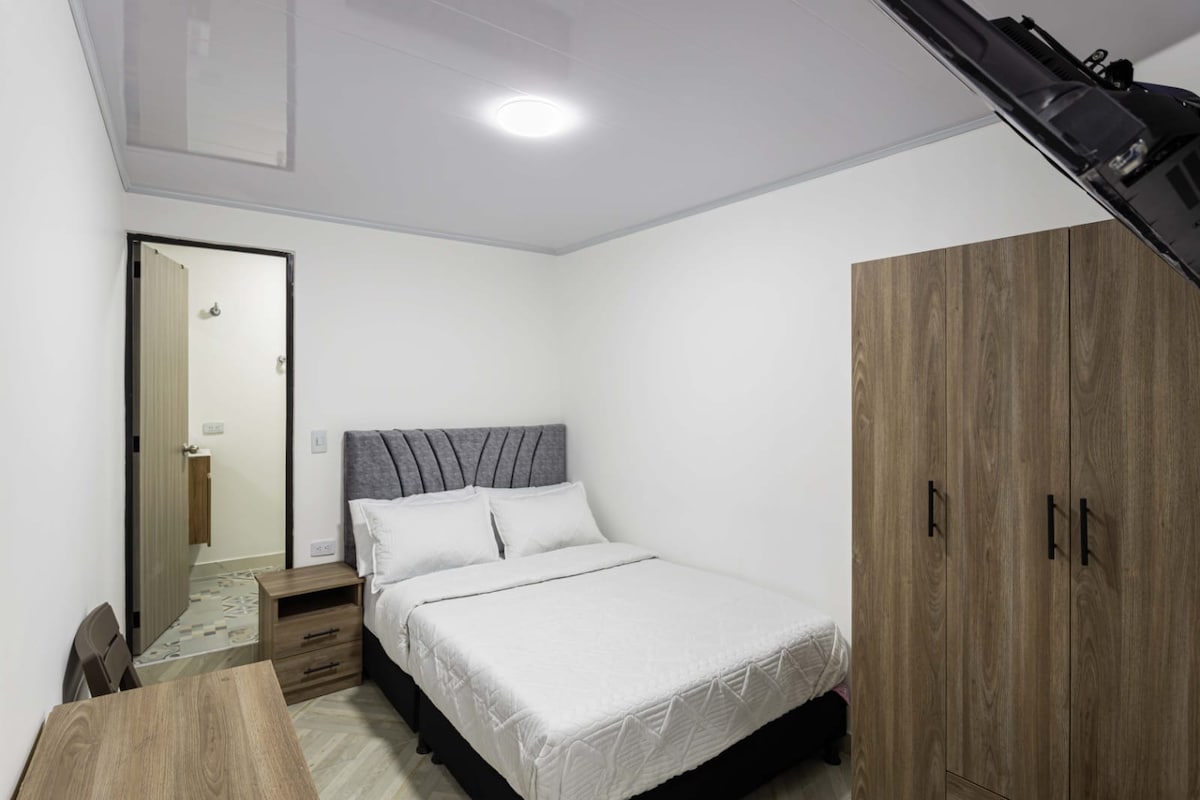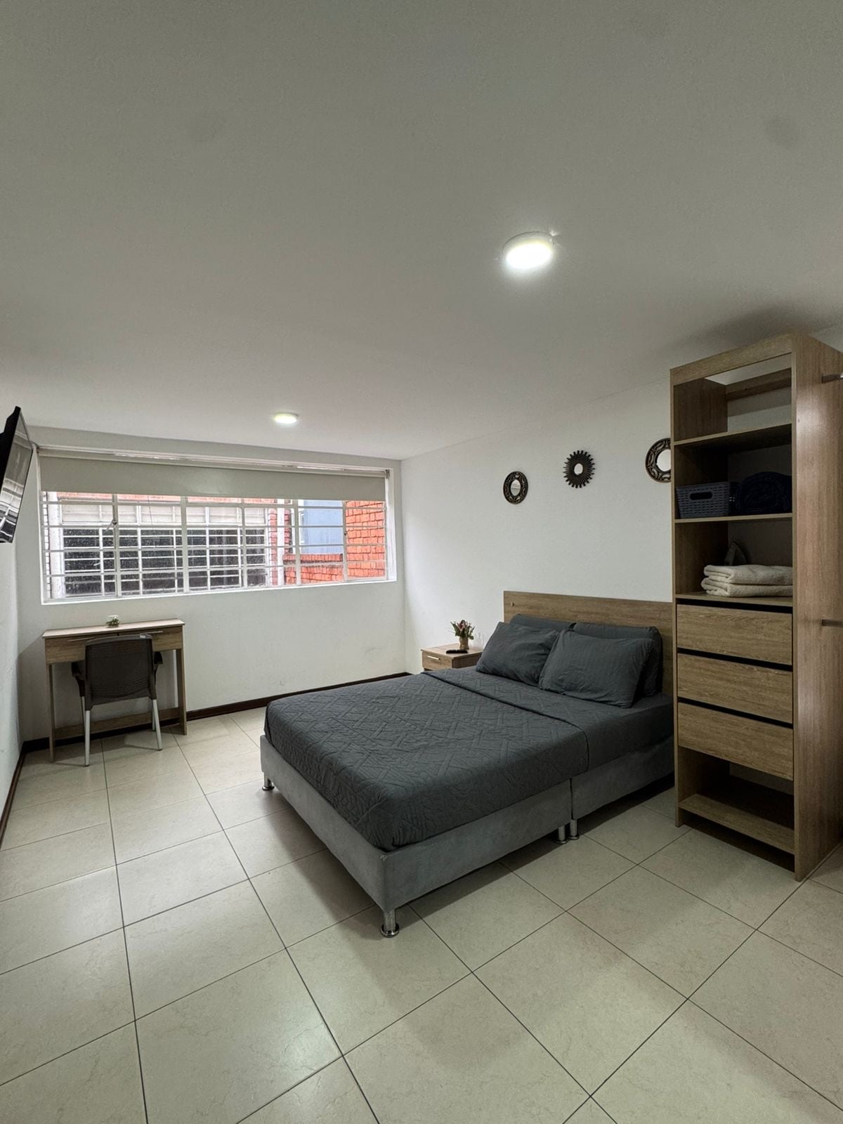 公寓漂亮、安静且舒适。 地理位置优越。 房源配备 1 间双人卧室、无线网络、厨房、1 间带热水淋浴的独立卫生间以及舒适的工作空间。 距离机场 10 分钟车程,公共交通便利,靠近购物中心、餐厅和公园,是离开波哥大的优越位置。