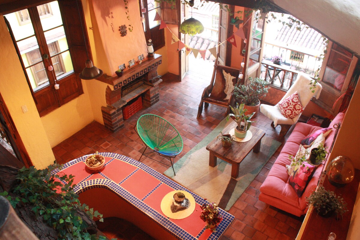 Llegaste a un lugar acogedor, romántico y con mucha luz natural. Tenemos un lindo balcón privado con vista a la montaña de Monserrate y la ciudad. Además el área de la sala con chimenea o el altillo con hamaca y otras vistas a la ciudad lo hace un ambiente sereno y lleno de paz. La ubicación es ideal: Restaurantes, teatros, museos y calles emblemáticas. Es perfecto para parejas, familias pequeñas, viajeros de negocios o turistas que quieren vivir el ambiente de una casa patrimonio de Bogotá.