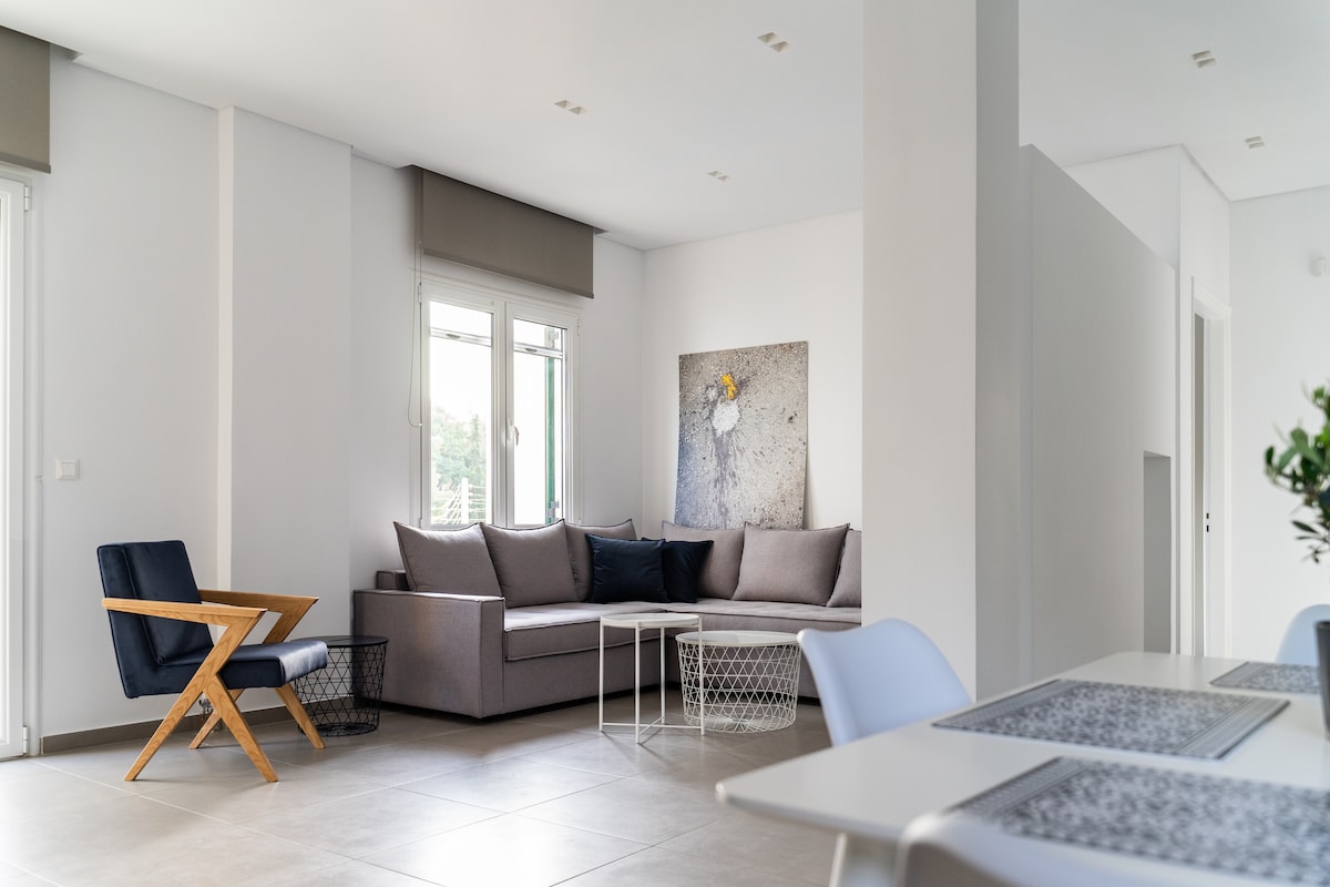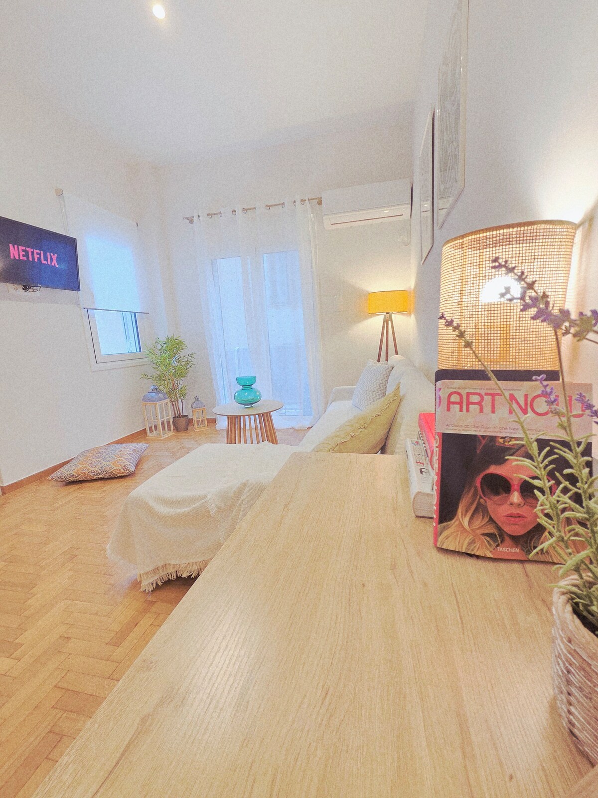 @Home is a minimal designed apt., that makes you Feel like Home, when you are away from Home. It’s on the 2nd floor of an apartment building of the 70’s, with a progressive architecture for its era and a beautiful patio in the middle. Only 3 min walk from Cholargos Metro Station.