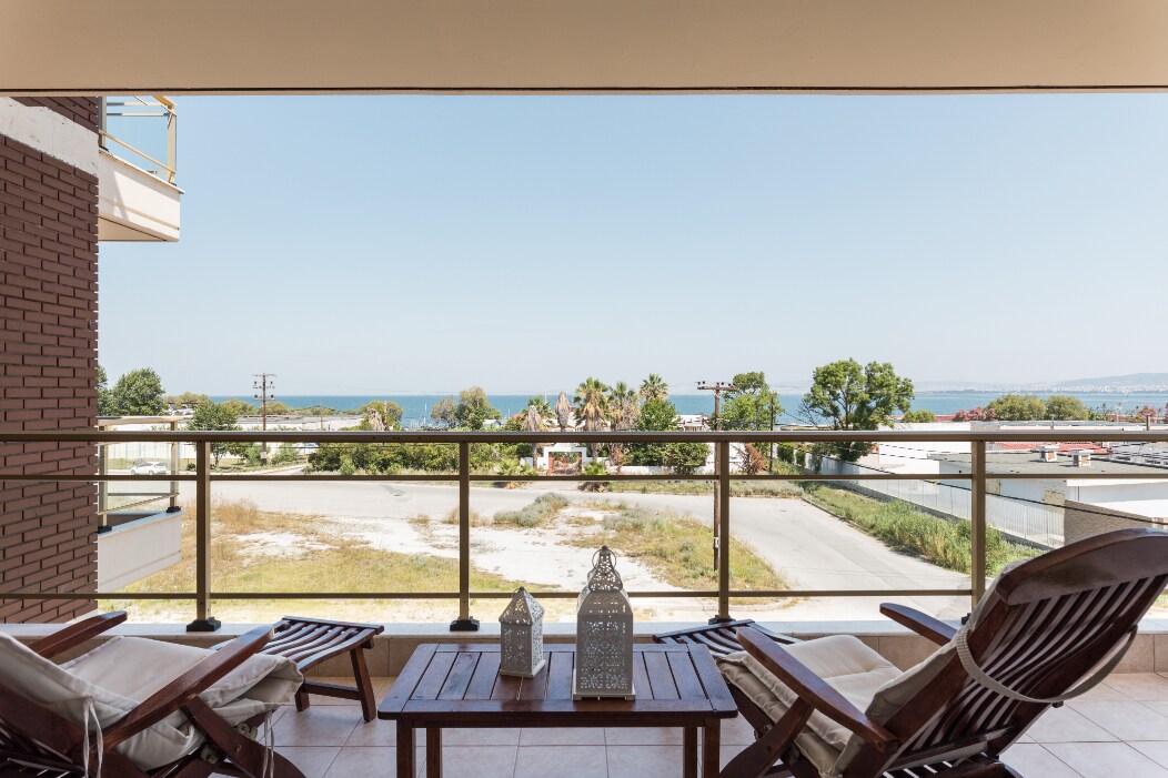 This beachfront apartment features a spacious balcony with beautiful views of Thermaikos Bay and Thessaloniki. It includes a large, cozy living room with a sofa that converts into a double bed, as well as a kitchen with an additional sofa. The small yet comfortable bathroom has a shower and a tap for everyday needs. The kitchen is equipped with a mini oven and complimentary laundry facilities. Additionally, there is unlimited 300 mbps Wi-Fi. The apartment has been fully renovated.