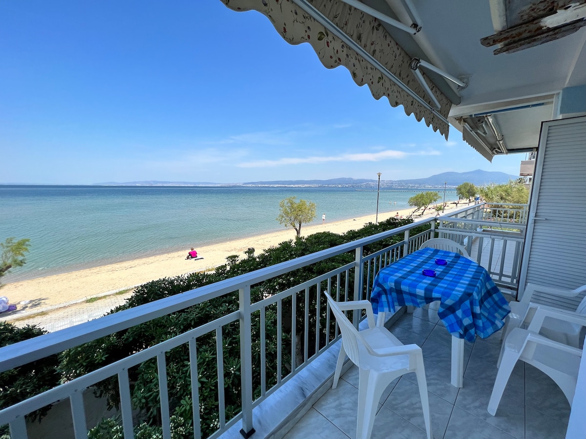 A cozy appartment( 45sq.m) in front of the sea of Perea. Fully renovated in 2021.The speed of wifi is 300 mbps!!! The bus station is 30 meters away. There is a supermarket 80 meters away. You will find a lot of beach bars, traditional taverns and playgrounds while walking at the sidewalk in front of the house. It's on the first floor. There are boats that you can use from Perea to Thessaloniki. The airport is 15km from Perea and Thessaloniki is 25 km from Perea.There are cars for rental!!