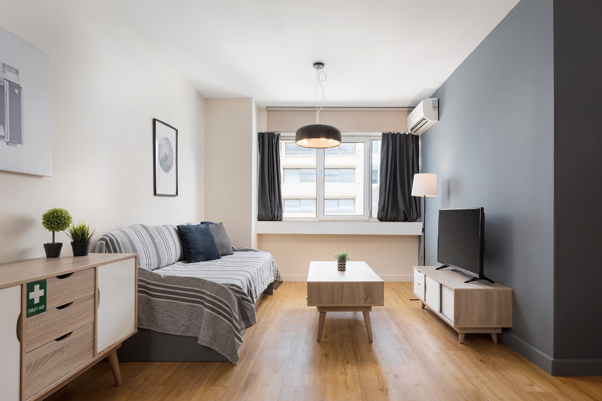 This renovated room is completely private, with it's own entance, balcony and bathroom. It is equipped with a comfortable single bed (towels and linen provided), a big desk, a mini-fridge, A/C and a spacious closet for all your stuff. The neighbourhood is very safe and quiet, with stores that can provide you with just about anything , yet within walking distance for all major sites and the city buzz. Closest metro/bus station is EVANGELISMOS, which is less than 10 minutes away on foot.