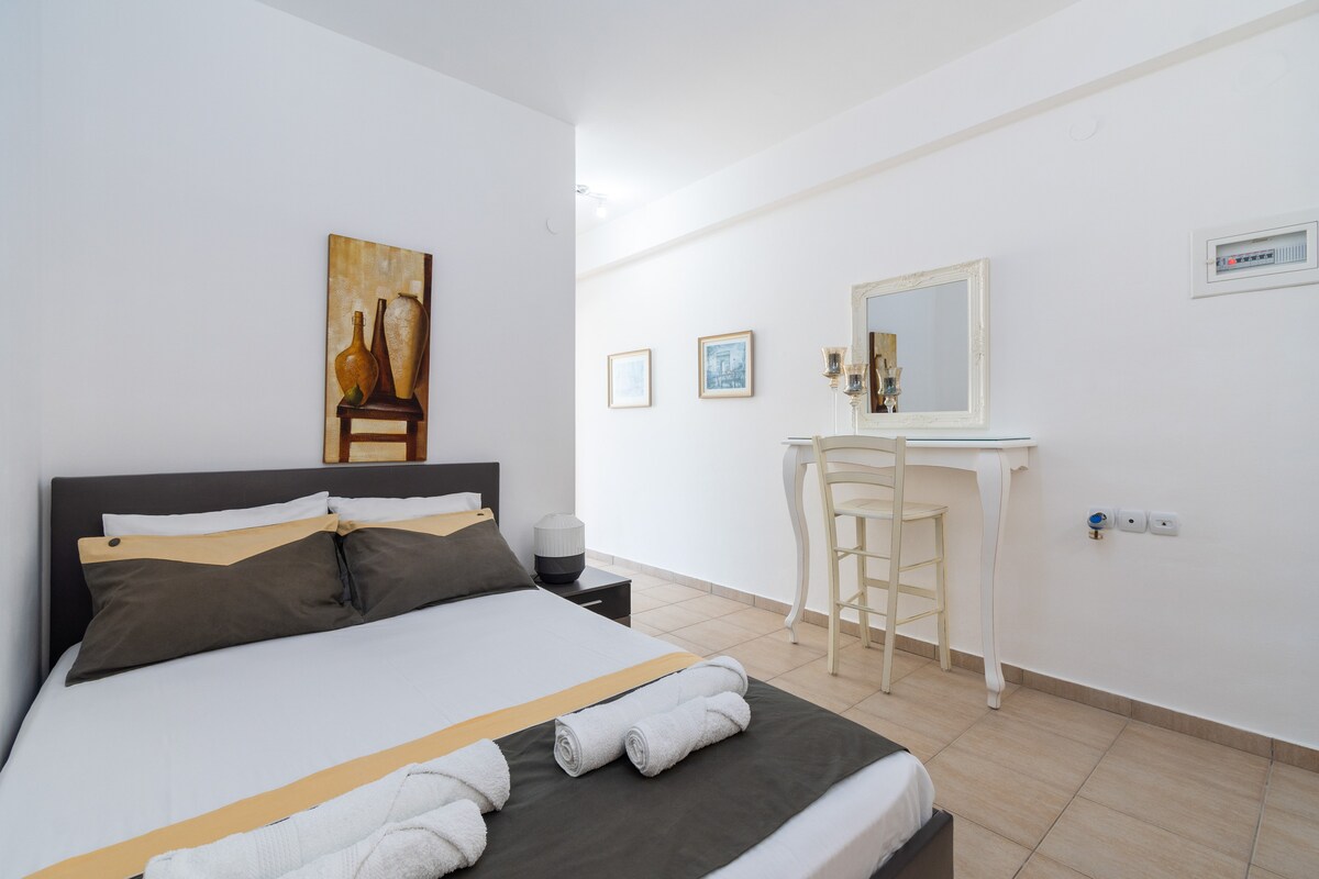 Beautiful,double bed apartment with sea view in Neos Marmaras of Chalkidiki. Located 50 meters from the main beach of the village and 50 meters from the center of the village by foot. The apartment is on the second floor so the view from it’s own private balcony is beautiful. There is a double bed so it can accommodate two people and also a private kitchen that people can use for their meals.