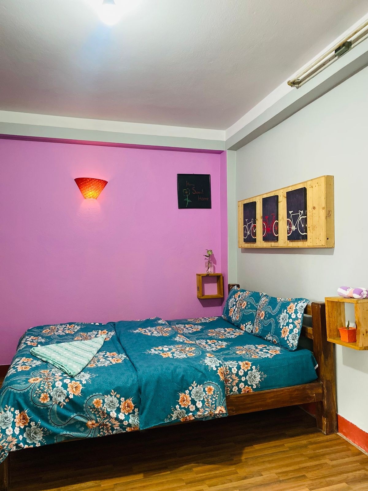 名堂花园屋是由一栋老式尼泊尔房屋改造而成,一共有9间房,客人使用的全部家俬结合中国文化和尼泊尔文化元素,均为纯手工精雕细琢而成。租用方式相对灵活,可以选择全部租用或单独租用其中一或二间。名堂花园屋占地面积800平方米,由安全独立的私人停车场、温馨惬意的花园咖啡馆、四季花开的热带花园、如自己家一样住宿区四部分组成,并且我们可以为客人提供一切旅行、商务服务。 名堂花园屋外,是博卡拉最安静舒适的basundhara park,您可以在公园内散步、运动、湖上泛舟。如果您来尼泊尔.博克拉 第一选择是滑翔、徒步、度假、冥想、瑜伽,那入住名堂花园屋将是您的第二选择。 提供额外服务 1.早餐:额外收费 7美金/1人 2.机场或大巴车站接 ,额外收费 4美金/单程 备注:网站上的房租价格(每晚/每周/每月)仅为每一间房的价格
