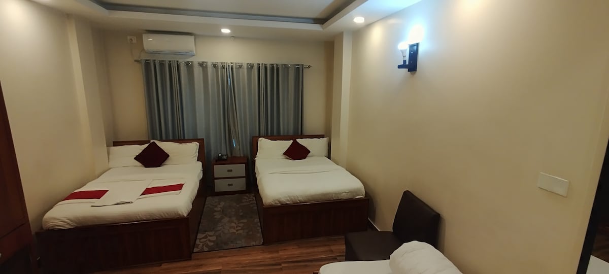 Namaste. We cordially welcome you to our humble 'apart-hotel', -just off of bustling Lakeside Road. As you'll soon see, there are easily over a thousand makeshift hotels in our small hubbub of a city. Ours is a generational one, and one of the first few. We have been serving our patrons for over a half-century. Enjoy walking access to many of Pokhara's sightseeing gems, shops, and top-notch restaurants while relaxing in a caring, family-run hotel with a proud heritage. AC will be charge 2$ /day