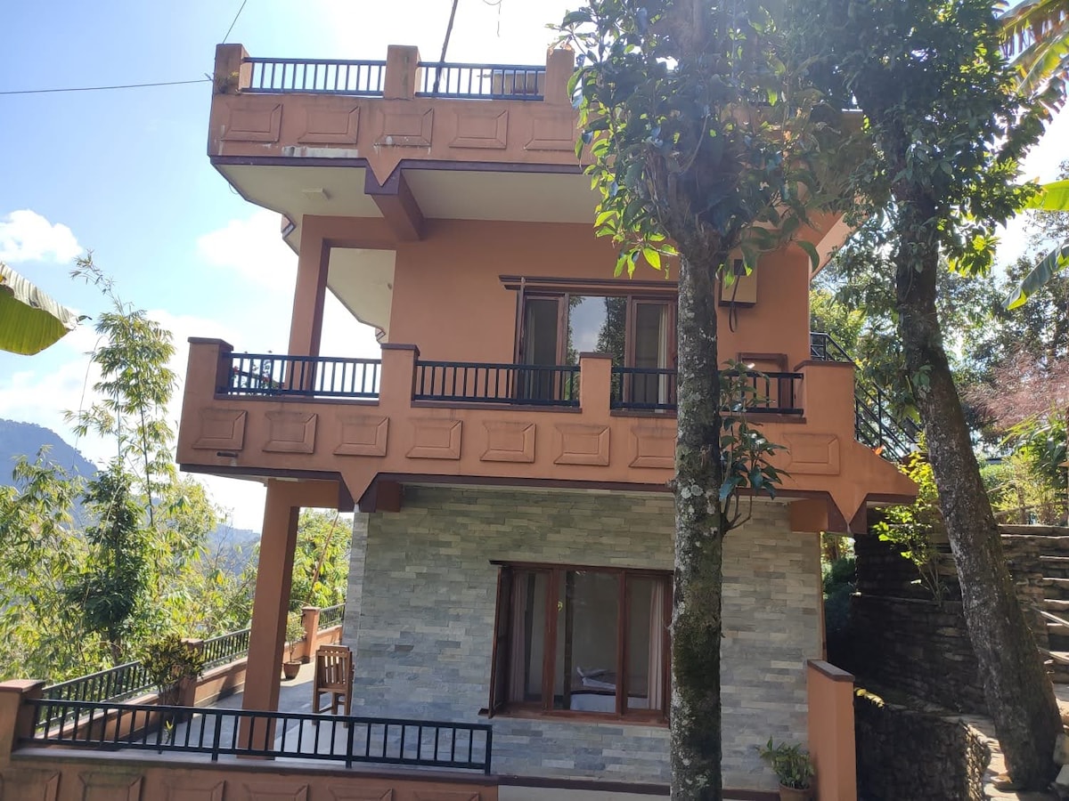 Tucked on a forest hilltop 12km from Kathmandu, our peaceful earthbag attic home invites deep rest. Enjoy the glass conservatory for meditation or relax on the deck above a lush food forest. Rooted in simplicity, a labor of love made for stillness; wake to birdsong, sip tea with Himalayan views, or wander forest trails. Perfect for slow days, soft silence, and fresh air. Fast WiFi & pickups available. Let go, unwind, and recharge in our unique sanctuary 40 mins from the city. Total peace.