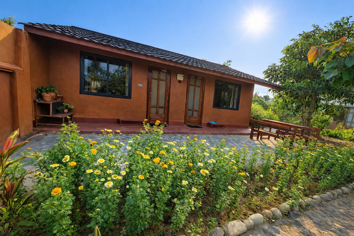 In need for a quiet and restful respite away from the city? Our home is the perfect countryside getaway. An hour from Kathmandu, you can enjoy privacy, clean air and rooms full of natural light. The house is clean, stylish, and surrounded by nature. It is a unique property, we have built it using upcycled materials - reclaimed wood, bricks and windows. Ideal for couples, small families, and remote work. Discounts available for long and short stays. Check in our calendar or reach out to us!