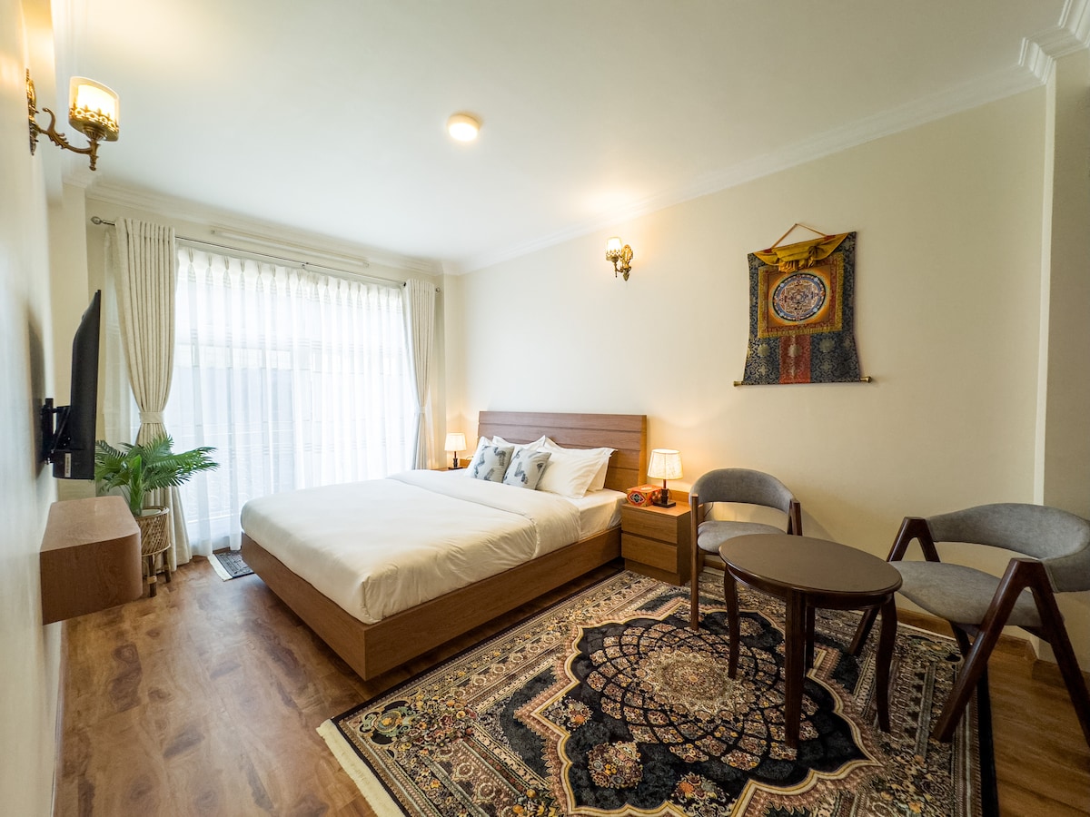 For a unique stay, enjoy this peaceful renovated Newari-style two-bedroom apartment in the heart of Old Patan. Combining traditional architecture and high level of comfort, the flat is just steps from Patan Durbar Square, local eateries, and shops. It is a very romantic cocoon, a great family apartment or just a wonderful base to explore the area. Perfect as well for a consulting mission as it features a big and comfortable working desk with ergonomic chair. Ideal for up to 3 people
