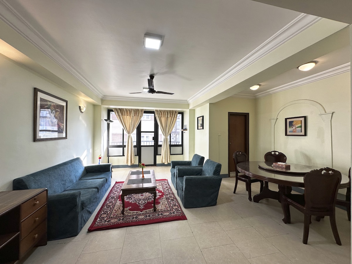 This longtime home of an elderly American man who is often abroad, is very comfortable with numerous amenities. It features many personal touches that give it more character than most rental spaces. It is located on a quiet back alley in the embassy area (Lazimpat) nearThamel. Public transport options and an endless array of eating choices are nearby. Perched on the 3rd floor above a pizza eatery with a lovely garden, this flat is perfect for the traveler wanting a unique, personal experience.