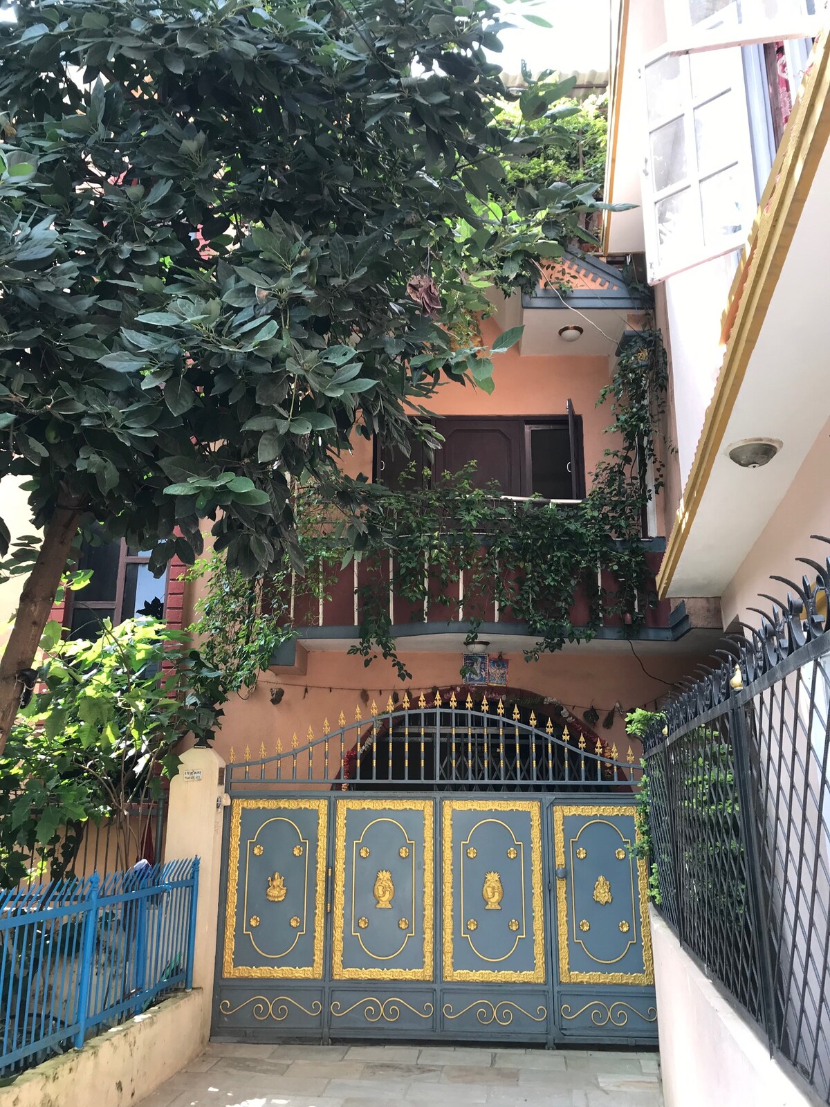 Beautiful little independent cottage, nested in a courtyard just a few meters away from the Golden Temple and Patan Durbar Square - The place is great to get culturally immersed in the amazing old Patan and enjoy full comfort in a very peaceful and quiet courtyard. On the ground floor is the living room with comfy sofa, low table, TV and big glass windows. On the 1st fl of your cottage is the bedroom with AC, bathroom and balcony. Outdoor Kitchen & washing machine are in the courtyard -