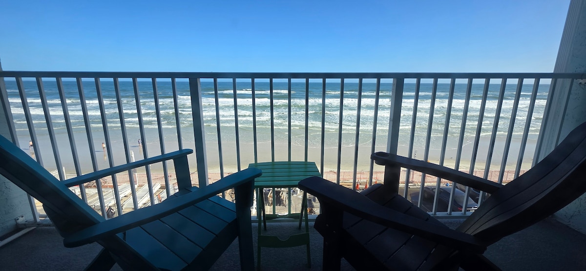 Note: During Nov/Dec 2025, the hallways of the building will be getting painted and new carpet. There may be some minor noise on weekdays during work hours. Steps from the sand, this 2 bed / 2 bath direct oceanfront condo offers amazing panoramic ocean views, a large balcony, and everything you need for a perfect stay. Enjoy free parking, your own free washer and dryer, a large newly renovated oceanfront pool, beach gear, and fast Wi-Fi. Sleeps 6 with comfy beds and 3 large streaming TVs.