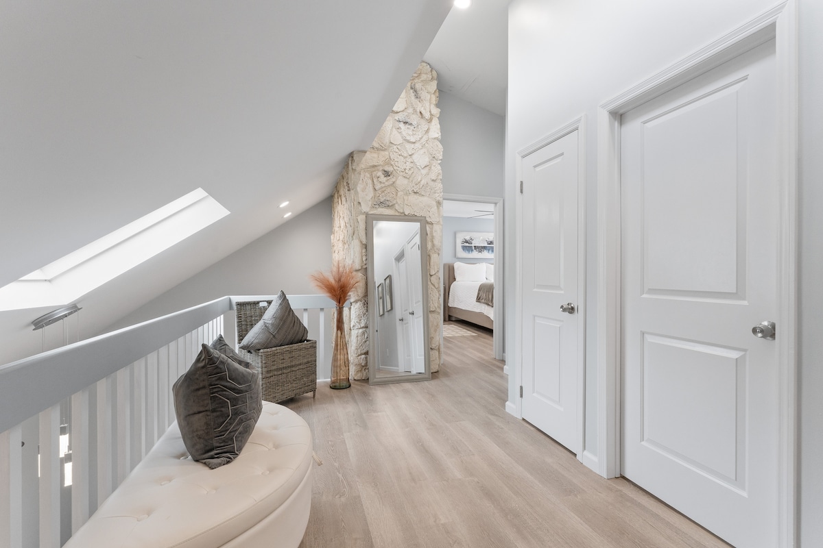 We love making our place feel extra cozy for the holidays and can’t wait to host you this winter! Our Cottage is a standalone guest house situated on our 4-acre property. Away from the main house, It offers ample privacy. The loft bedroom (not childproof) can be reached via an easy-to-climb staircase. The KING SIZE bed ensures a restful night and is perfect for a lazy morning. Features include a kitchenette, electric fireplace, BBQ, outdoor fire pit (with wood), covered patio, and a smart TV.