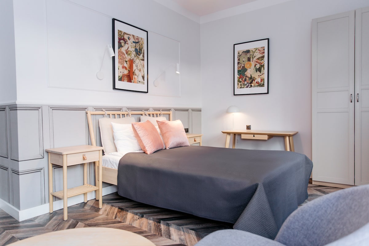 Enjoy a peaceful and stylish stay at this centrally-located place. A newly built, beautifully furnished apartment, perfect for a quiet stay in the heart of Gdańsk. Located on the greenest side of the city center, right next to Góra Gradowa. Although historical and cultural sights, shops, and restaurants are only a 10-15 min walk away, the area feels peaceful and secluded. The place offers a unique, cozy, and very comfortable design, perfect for a couple and a weekend escape.