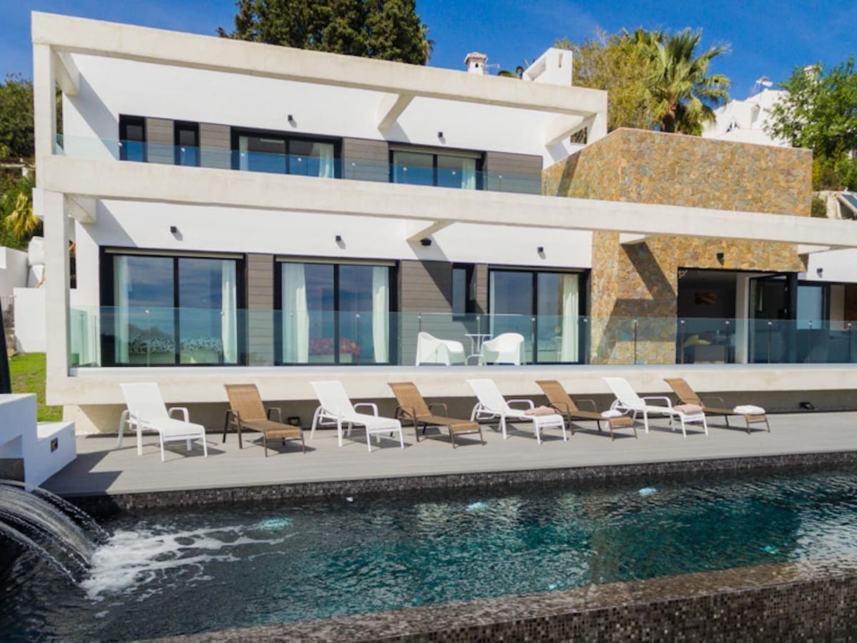 Experience the quintessential coastal getaway in this luminous Andalusian style villa, where every room is a window to the breathtaking 180º vistas of the Mediterranean. Enjoy the sunshine all day! The 3-bedroom house has a private salt water pool with optional heating and terraces with views all around. Enjoy the fully equipped kitchen, bright living area & stylish furniture. Garage and wifi available. Enjoy this beachfront airbnb year-round!
