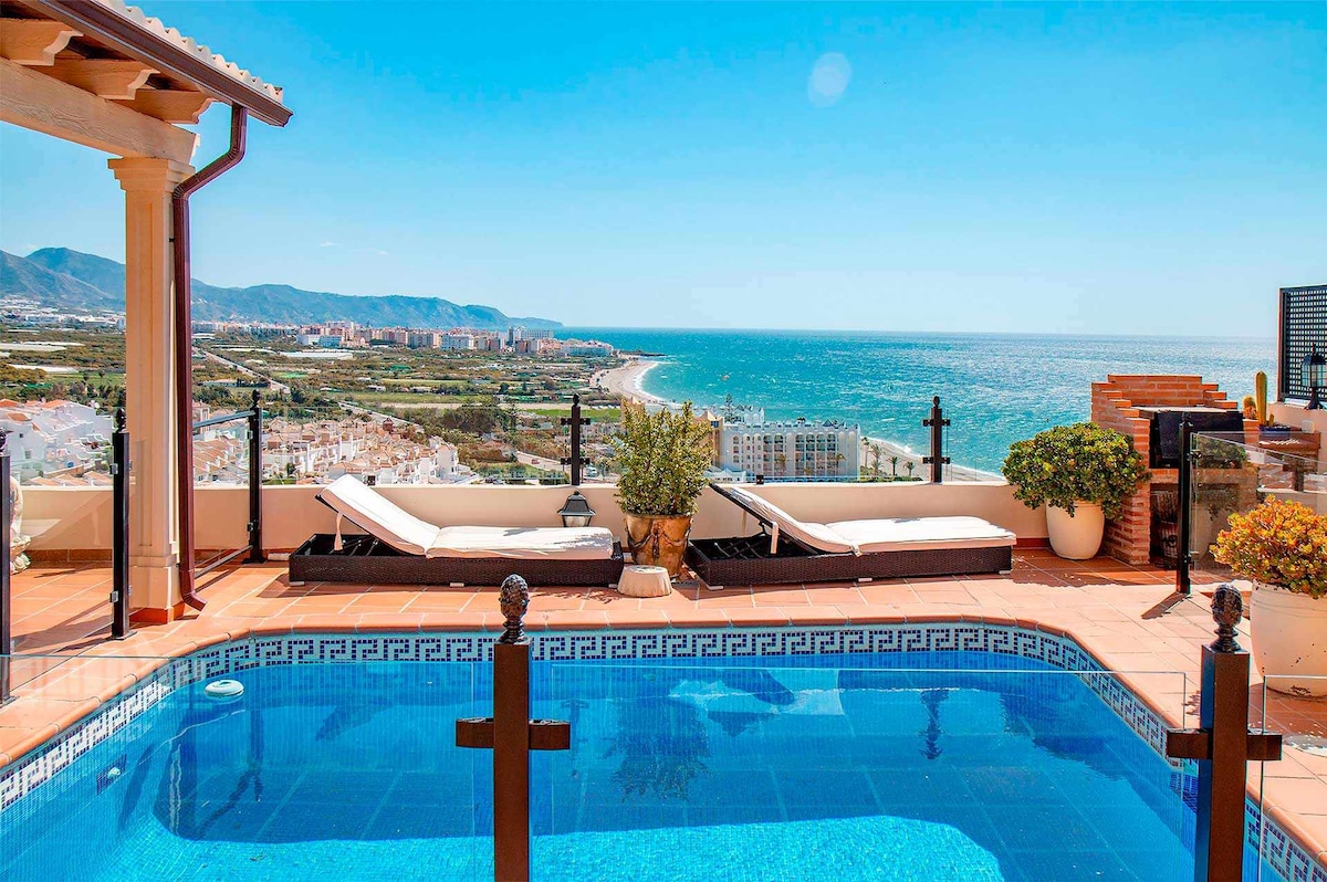 Slappna av i en villa med 180 graders havsutsikt i det vackra området Ladera del Mar, strax utanför Nerja. Njut av egen uppvärmd pool (mot extra kostnad 5-7 Euro/dag), trädgård, uteplats med grill, samt flera terasser. Föreningen har en gemensam pool. I villan finns vardagsrum, kök som renoverades 2025, tv-rum, tre sovrum, två badrum samt gästtoalett. I tornet finns ett arbetsrum med en hissnande utsikt. Till ”balkongen” in centrala Nerja är det 3,5 km och till närmaste strand 750 m.
