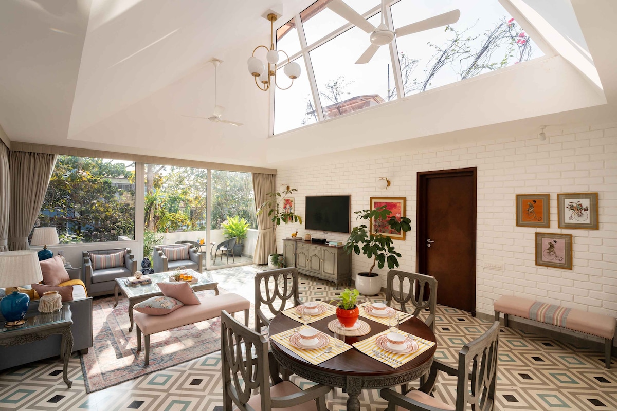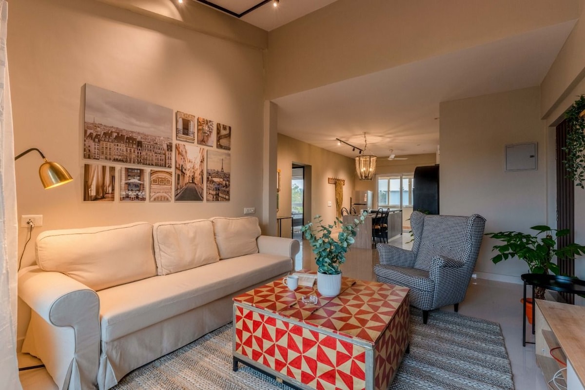 Welcome to Sereno Arthouse — a curated modern luxury where tropical warmth collides with artistic expression. Located in Nerul, this thoughtfully crafted 2BHK villa is filled with striking artworks, sculptural décor pieces, bold accents & statement installations showcasing contemporary sophistication while still feeling warm, premium & deeply memorable. Whether you’re a couple, a small family or a group of friends seeking a stylish retreat, this villa offers a unique slice of modern Goa.