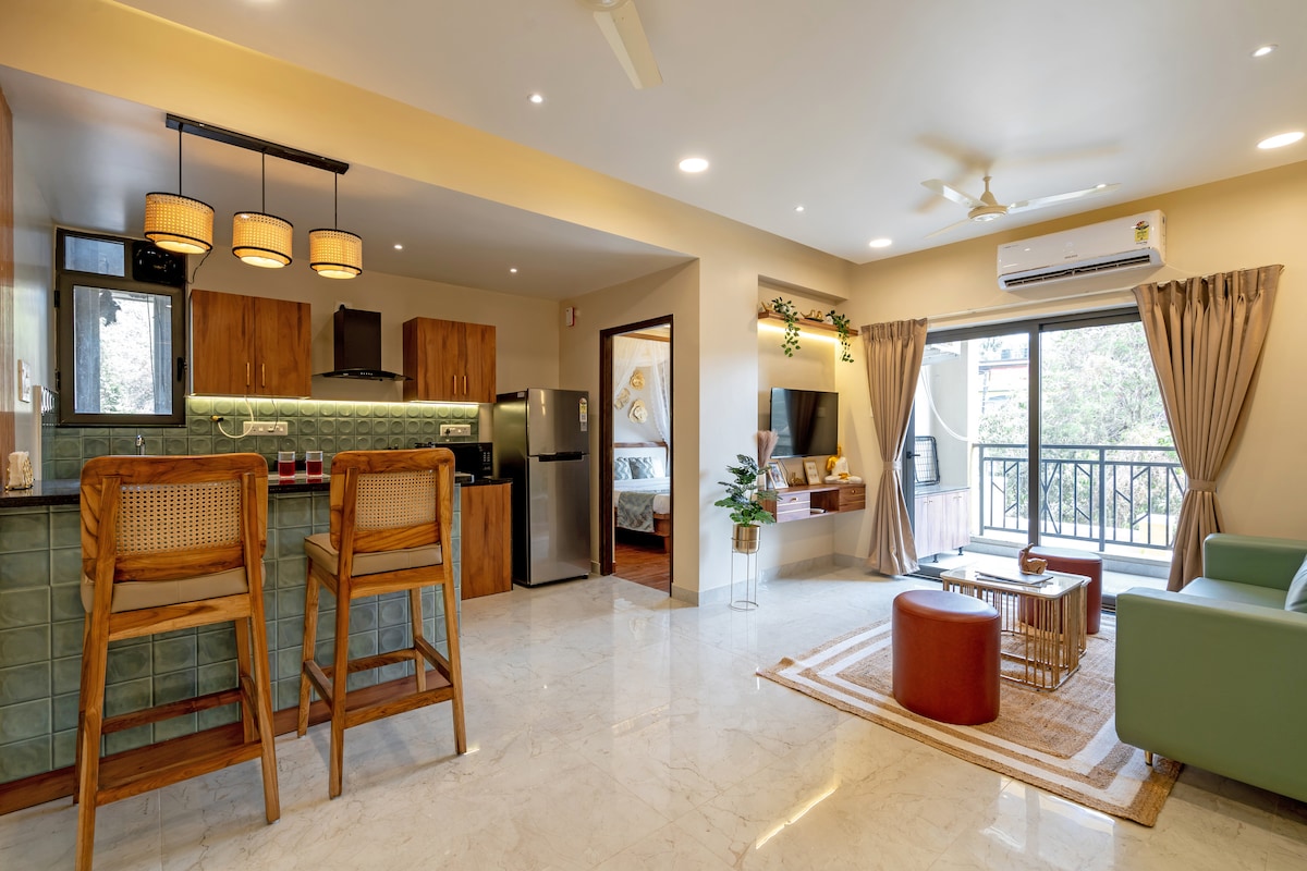 **Siwaa Stays** - Charming 1 BHK Apartment in the Heart of Candolim, North Goa Welcome to Siwaa Stays, a comfortable and modern 1 BHK apartment ideally located just 5-6 minutes from the famous Candolim Beach in North Goa. Nestled in a serene society bordered by lush mangroves and overlooks a river. At Siwaa Stays, we’ve designed a cozy 1 BHK apartment with everything you need for a memorable and relaxing stay in Goa.