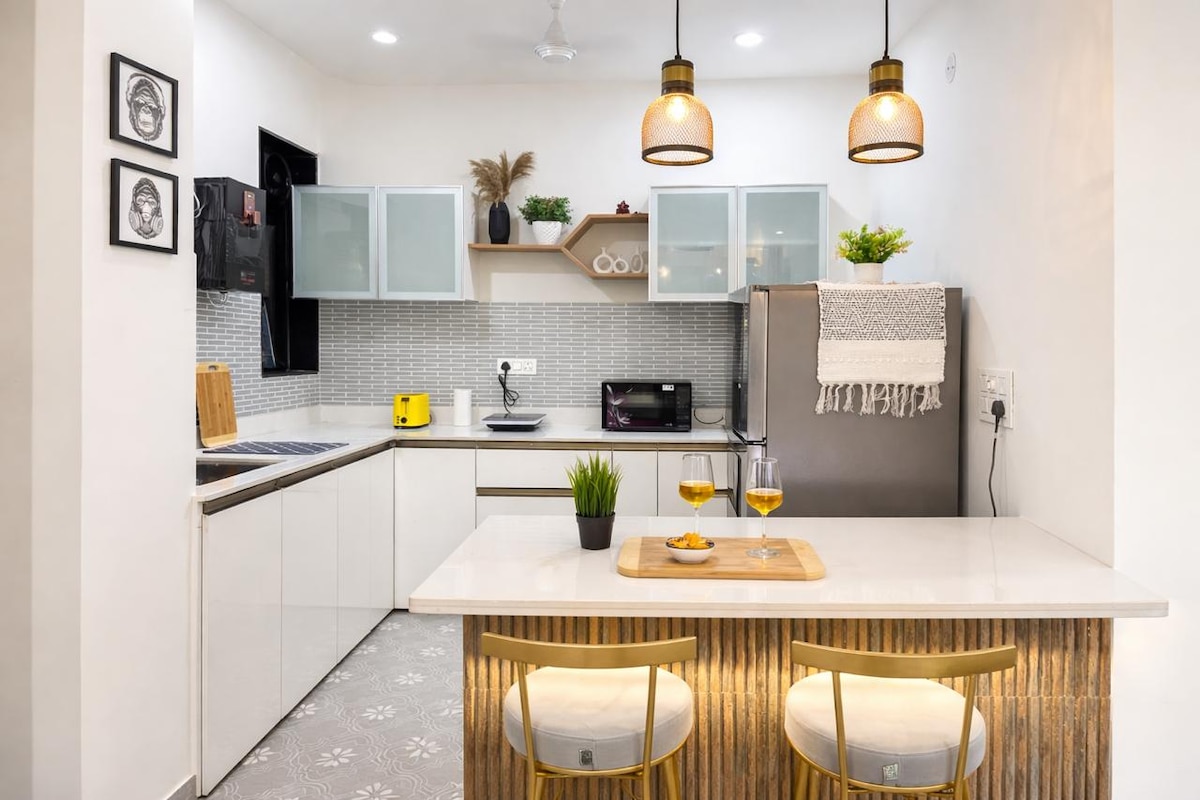 宽敞的2卧室Candolim |泳池•步行即可抵达海滩•