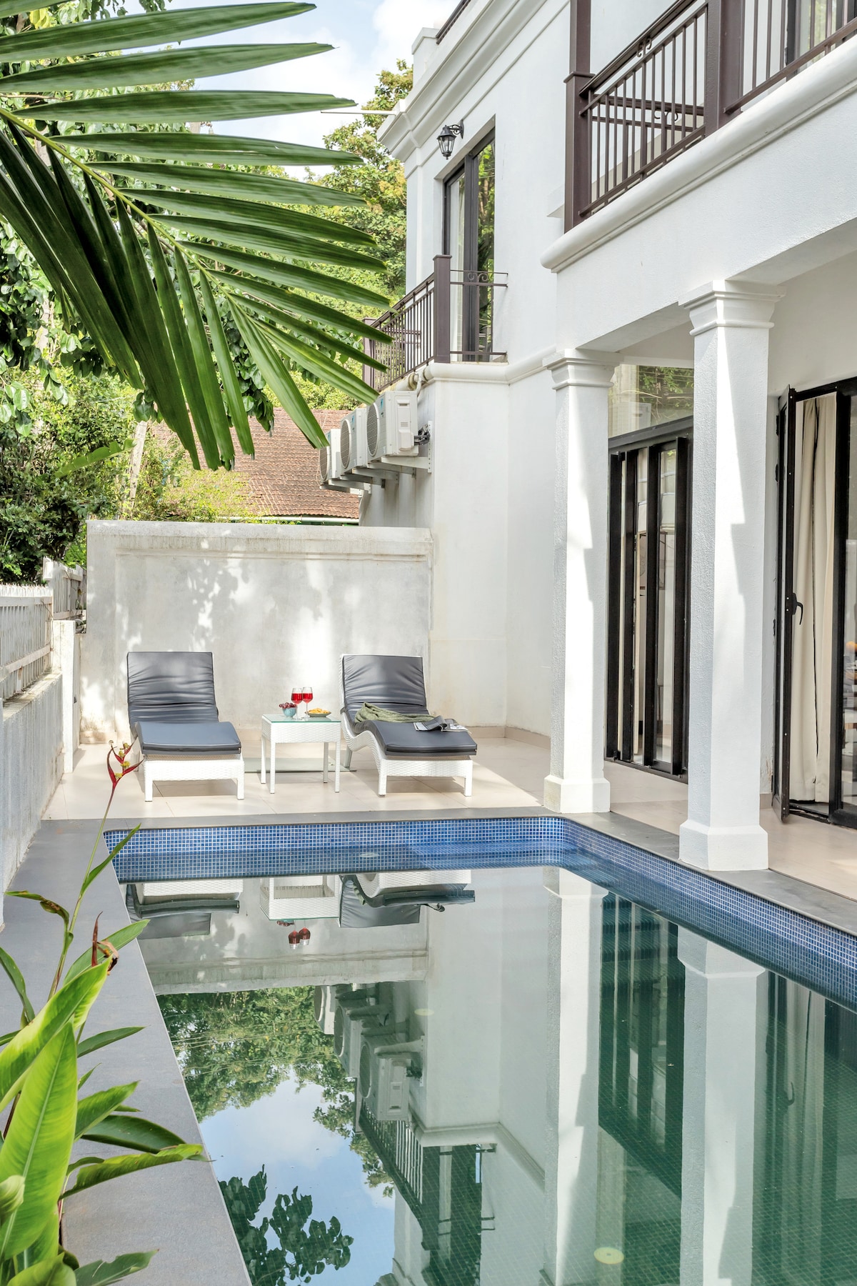 Kick back and relax in this calm, stylish villa. This unique and elegant space combines all the best that Goa has to offer, the combination of culture, entertainment, amazing sunsets; and top-end amenities like a hot tub, a swimming pool and power backup, to boost your getaway and your social media. This is a standalone villa located just 10 min from Candolim beach, within a gated complex. Well connected to highways, and not too far from shops, mall, restaurants, bars, and supermarkets.