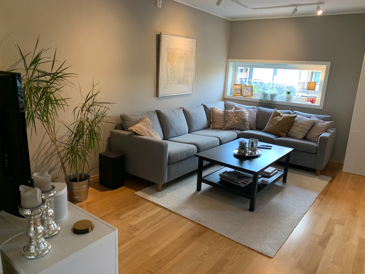 30 min. fra Oslo Lufthavn med bil. Velutstyrt leilighet i rolig, familievennlig område. 15 min. gangavstand til tog. (Tog bruker 38 min. til Oslo S.) Cirka 45 min. med bil til Oslo. 15 min. gangavstand til matbutikker, apotek, pizza/indisk/grill og frisør. Området har fine turmuligheter og ligger nær Utebadet "Bader'n" (åpent 19. juni - 16. august). Gode parkeringsmuligheter og muligheter for lading av elbil i garasje. Mesh nettverk. Disney+, Allente, Netflix. Mange brettspill og leker.
