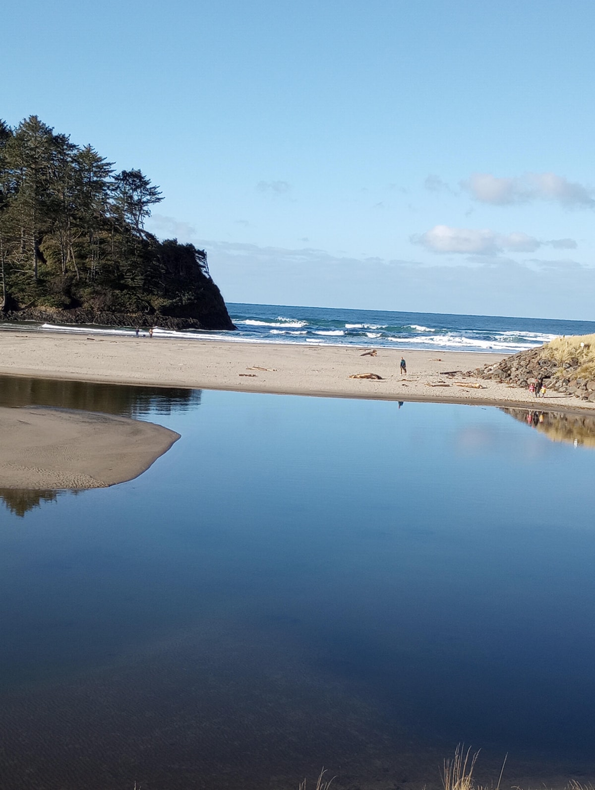 Our small STUDIO “jewel box” condo looks out on to two merging, clear, fresh water creeks, sandy beaches, tide pools, layered cliffs, the Ghost Forest, and is surrounded by a national forest. It has: full kitchen, bath, queen bed, pull out twin trundle bed (best for kid but can sleep adult). It’s been full renovated to make it our dream getaway! Neskowin has a good wine/deli/market on site. Please reference pictures to see the trundle bed twin + last pic for location off US Hwy 101.