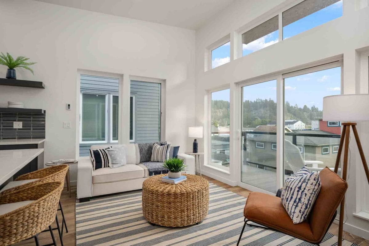 Spacious tranquil 2BR/2BA retreat overlooking Siletz Bay merging into the Ocean, offering nature views. Experience a serene ambiance as birds glide over water. Unwind near the real fireplace with a cup of coffee. Conveniently walk to nearby restaurants, shops, food carts. Enjoy a beachfront view from the window. Sleeping arrangements include 2 Queen beds and a Twin folding bed. Master br with a 2nd bath adjacent to the 2nd bedroom. Includes 1 reserved parking spot, with extra spaces available.