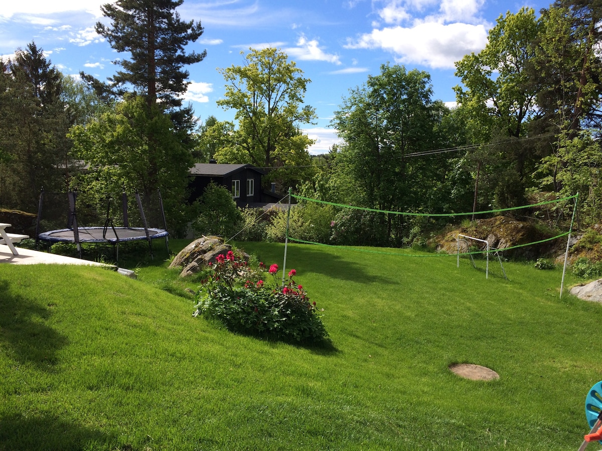 Family-friendly villa on idyllic Nesodden and Hellvik. Perfectly situated to combine both beautiful beaches and forest at Nesodden, with a visit to Oslo. The house is only a 10-minute walk from the beach, Hellvik Tangen and Hellvik Stranden, with good and children-friendly swimming possibilities. Several nice walks in the forest or along the water just outside the door! Oslo is very accessible with a short bus ride and a 23 minutes boat ride.
