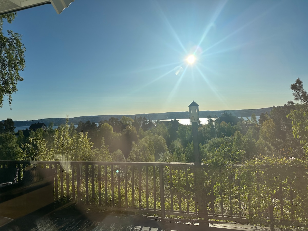 Leiligheten er i 2. etasje i vår nybygde enebolig og har fantastisk utsikt over Bunnefjorden. Det er en stor vestvendt balkong hvor du kan nyte solen til sent på kvelden. Leiligheten ligger på idylliske Svartskog og har fantastiske turmuligheter. Det er kort vei til Bunnefjorden, hvor du kan bade, fiske, eller padle kajakk. Du kan rusle gjennom skogen og spise på Svartskog kolonial, eller du kan gå Kyststien ned til Breivoll gård. Du kan ta 505 bussen til Oslo fra Svartskogtoppen på 20 min.