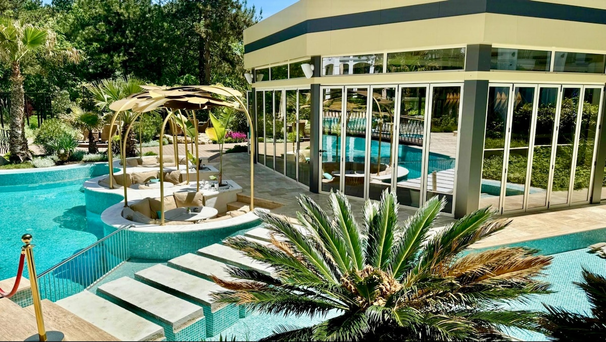 Stay in a brand-new, modern apartment just 700m from the beach! Located on the ground floor, it offers direct access to a VIP pool & jacuzzi, plus 11 more pools in the complex. Enjoy a kids’ playground, pool bar, and Mediterranean restaurant. Spa services available at extra cost. Close to Supermarket Mladost, shops, bars, and pharmacies. Free street parking. Book now for a perfect getaway!