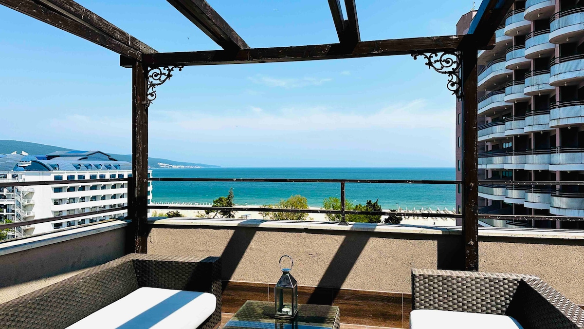 Vacation 10 meters from sea, beautiful fo sea and old town (Nesebar) view. Newly renovated, beautiful, prestigious apartment. Equipped with all amenities (swimming pool, SMART TV, Wi-Fi, washing machine, cooker, fridge, kitchen equipment). If you want to spend a unique vacation, this offer is for you. It can be remembered. The sound of the waves will wake you up every morning.