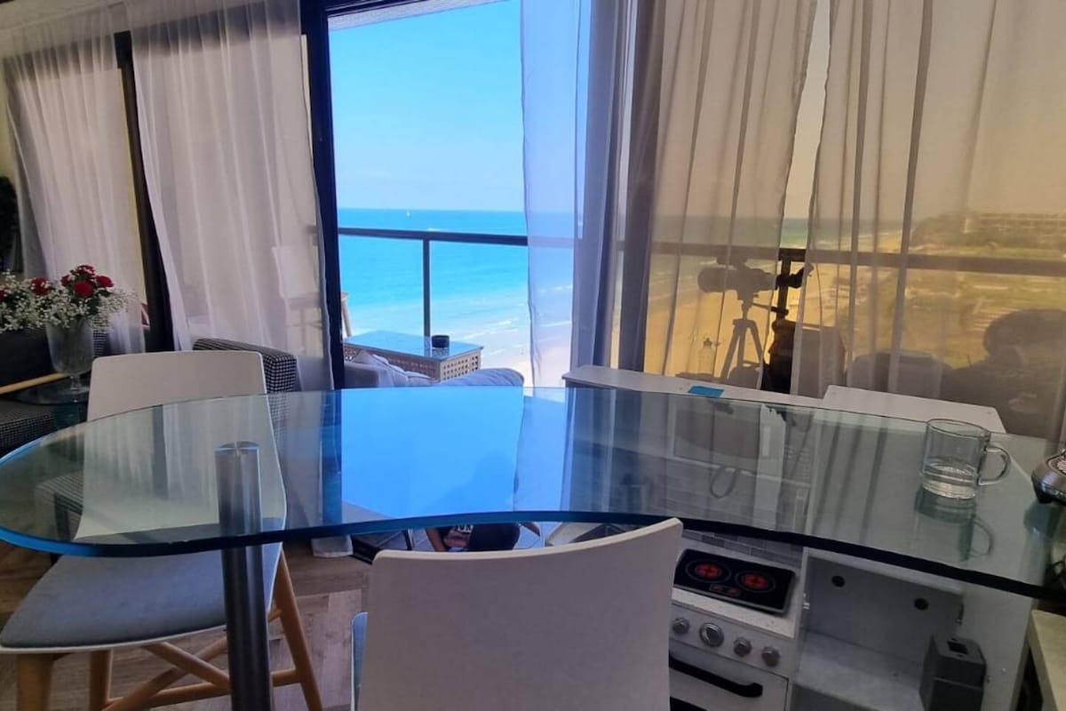 #My place is perfect for your sea vacation! It is situated first line to the sea and across the street from the Iris Nature Reserve, perfect for a nice hike/stroll. It is less than 1 km walk to the Ir Yamim mall and sports complex. You’ll love my place because of the light, the high ceilings, the comfy beds, and the 21st floor view overlooking the sea! My place is great for couples, solo adventurers, business travelers, and families (with kids). There is a kosher kitchen with all utensils.