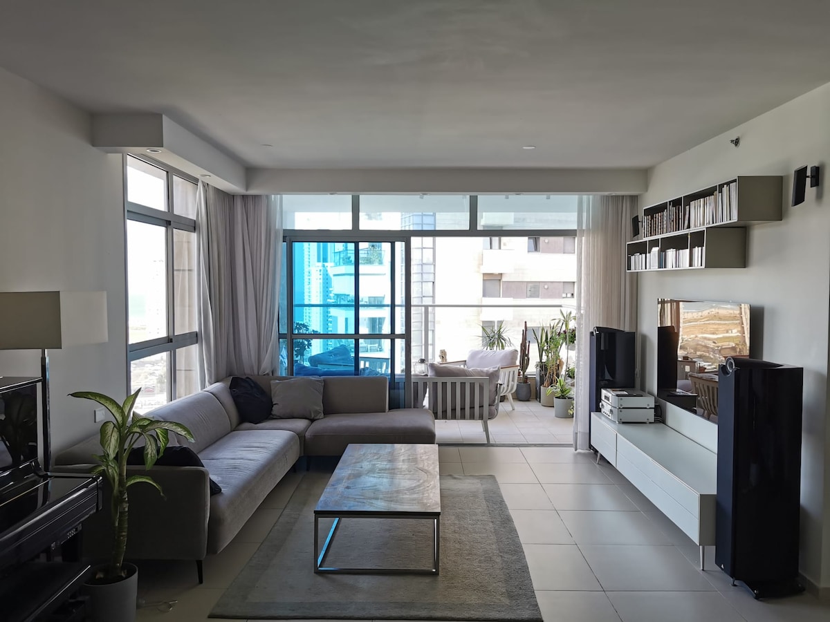 Welcome to the amazing holiday apartment which is located in the center of the Tel Aviv beaches In front of Gordon Beach and near the Sheraton Hotel You will not find a better location than this! The popular beach is full of surfers, colorful boats and people playing on the beach All this is synchronized with a breathtaking view of the sea and the Sheraton pool. The apartment is on the third floor without an elevator