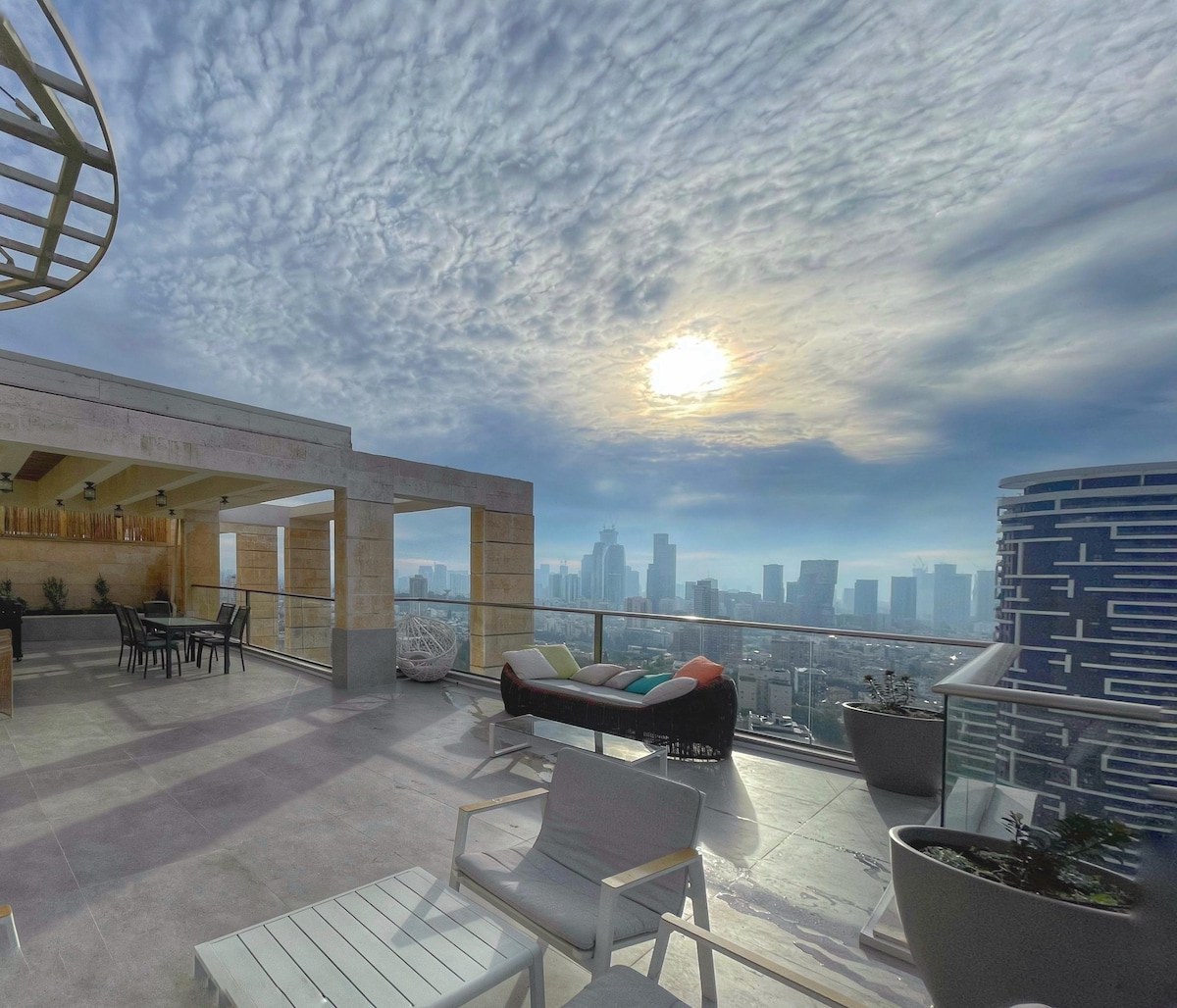 Rare and beautiful penthouse. 500 feet+300 feet terrace. 10 min from Tel Aviv. Breathtaking panoramic urban view to the ocean and the city. Free parking next to the elevator. Gym in the lobby. 24 hours Lobby clerk. Smart TV +Netflix, Youtube, Etc' Ideal for couples or families (Children friendly :)).
