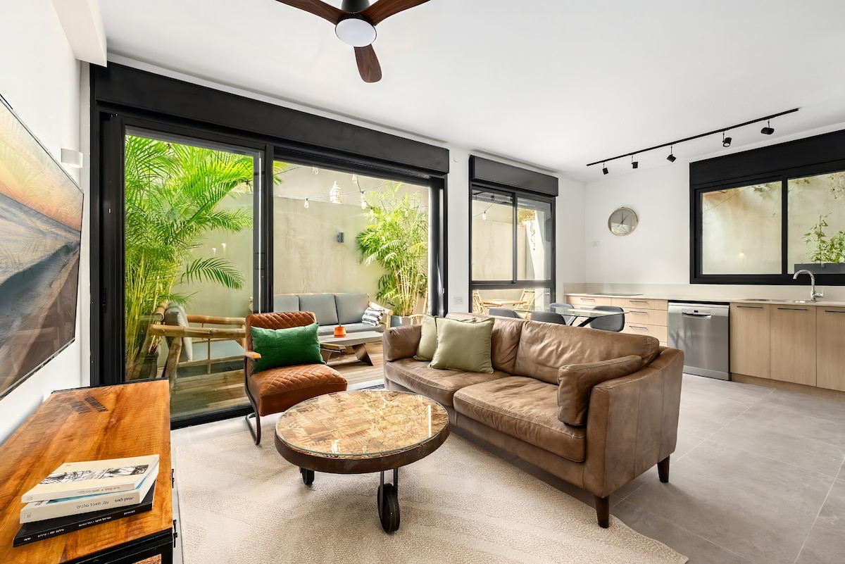 Indulge in the elegance of this exquisite apartment. The stately home features a vast open-plan living area, an all-white monochrome interior contrasted by wood finishes, a minimalist aesthetic, a private sauna, private jacuzzi and a wraparound patio with a BBQ. Our apartment is one minute walking distance from Dizinghof Square, and 6 minutes walking to the beach. The place is highly equipped and relatively new. Our apartment is one minute walking from Dizinghof square and six minutes walking from the beach . Restaurants , and coffee shops are all around.. It takes about 25-30 minutes to walk to both the Port ofTel Aviv or Jaffa (opposite direction)