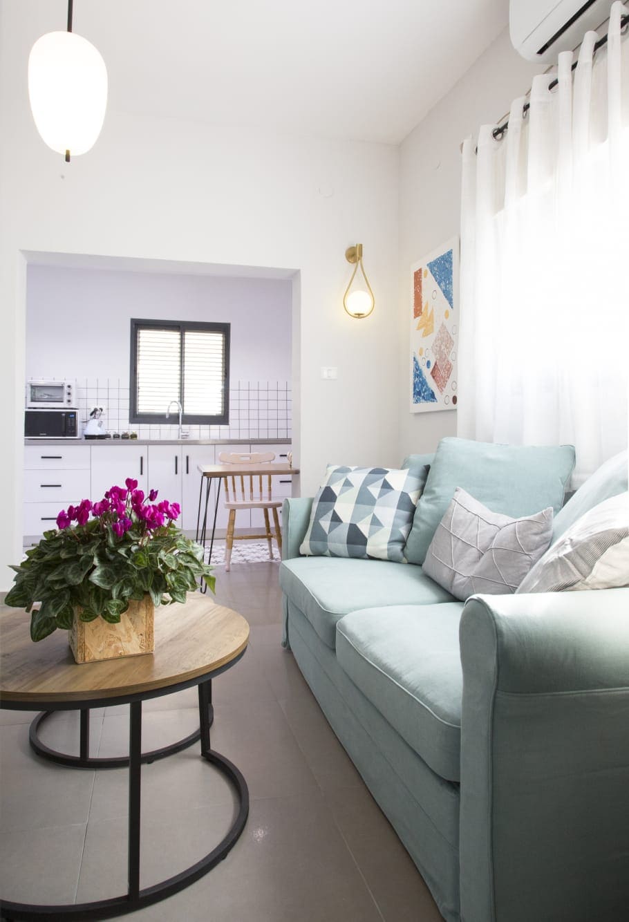 A comfortable renovated sunny studio with queen-size bed, a/c, private WC, shower, fully-equipped kitchen, roof garden, free parking, a communal shelter on the ground floor, fast Wi-Fi, free breakfast upon request. Prime location. Walk distance to Beit Protea, IDC, bus station! 7 min by car to the beach. Full bedding+towels, constant hot water and drinking water supply, hairdryer, espresso machine, yoga mat. If You miss your beloved pet - our dog Donna at your service 😀. Speaks EN, HE, RU.