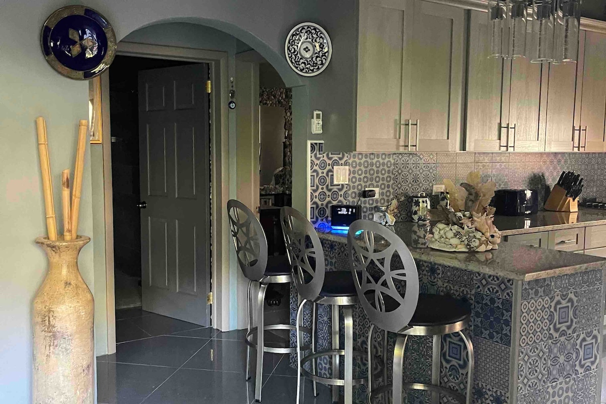 Modern Luxury Holiday House, 2 bedrooms, fully equipped. Its comfortable furnishings give it a homely feel mixed with tropical vibes. It has access to the pool within the complex, as well as the Blue Bay Resort’s golf course and spectacular beach. It is located in one of the island’s most popular areas: central, accessible by public transportation, 3 minutes to a supermarket, 5 minutes to Sambil Mall, and 10 minutes to downtown Punda/Otrabanda. Everything you need to be comfortable in Curacao!