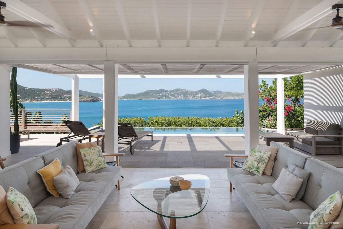 Agora, a spacious and luxurious villa in Terres Basses, features a large infinity pool and a rooftop terrace with a pool table and panoramic sea views. Its 4 suites include full bathrooms and outdoor showers in lush private gardens. Privacy, comfort, and an exceptional setting make it perfect for unforgettable family or friends’ getaways.