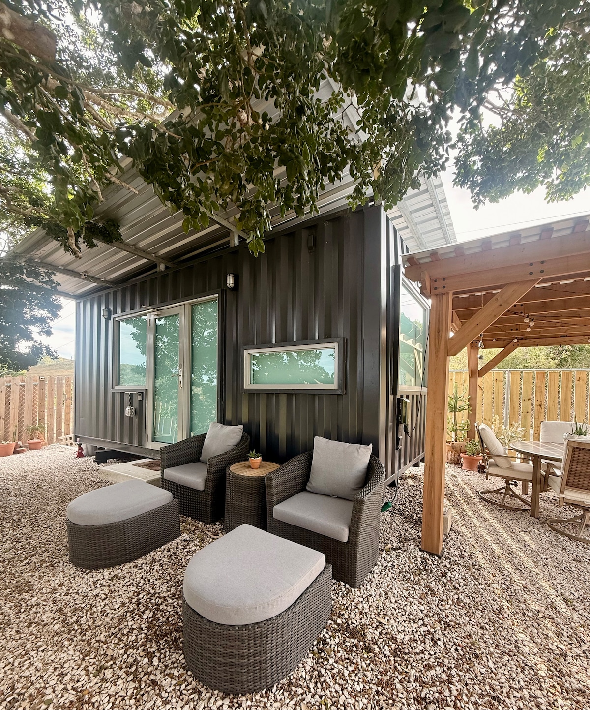 A unique stay in a cozy modified shipping container. Breezy, shady, clean with all the comforts of a traditional studio apartment. Perfect for 2! Newly constructed, full kitchen amenities, WiFi, A/C, streaming live tv, and a deck to sit and shoot the breeze or enjoy the fruit trees. A 15 minute or less drive will get you to the Henry E. Rohlsen Airport, Sunny Isles Shopping Center, Cane Bay Beach, or the historic town of Christiansted to do some souvenir shopping or grab a bite to eat.