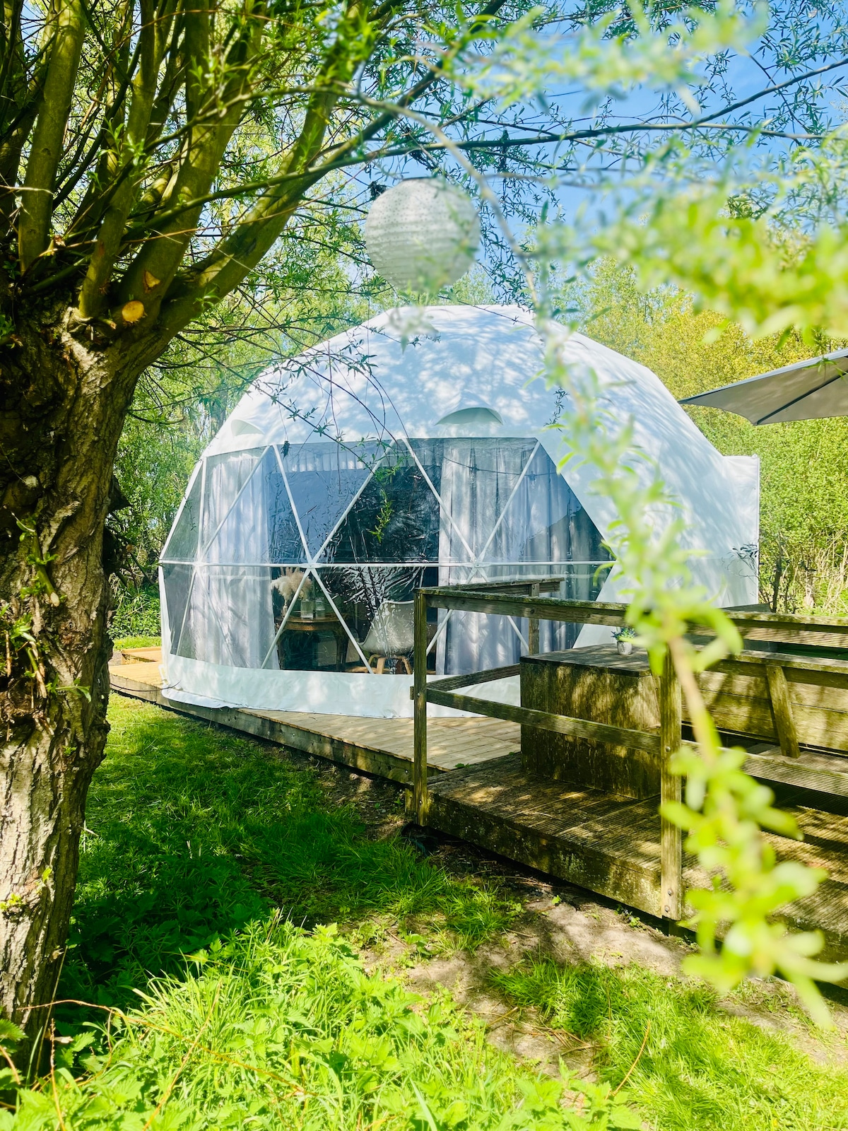 Er even tussenuit onder de sterrenhemel. Kom in stijl kamperen in onze DroomDome. In ons voedselbos in aanleg hebben we een aantal natuurkampeerplekken én deze schitterende DroomDome. Deze is voorzien van een 2persoonsbed, tafel met 2 stoelen en een buitenzitje met vuurschaal waarop ook kan worden geBBQ'ed. Op verzoek kan er een 1 persoonsbed en kinderbedje bij.. Kom je met een grotere groep? Je mag altijd een extra tentje meebrengen voor je vrienden/kids. Kom genieten van de natuur en de rust!