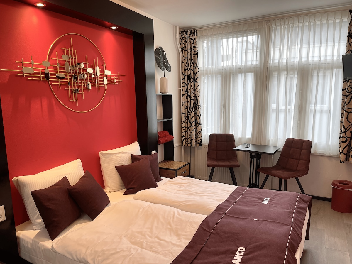 A compact and efficient room with a double bed, private bathroom (shower and toilet), TV, safe, air conditioning, and free WiFi. Some rooms include a central pillar. Ideal for short stays and budget-conscious travelers. Bike rentals are available, and guests have access to the rooftop sauna and hot tub (open to all guests). The hotel’s restaurant is a well-known favorite among locals. City Tax of 12.5% for the stay will be charged at the hotel and IS NOT INCLUDED IN THE RATE.