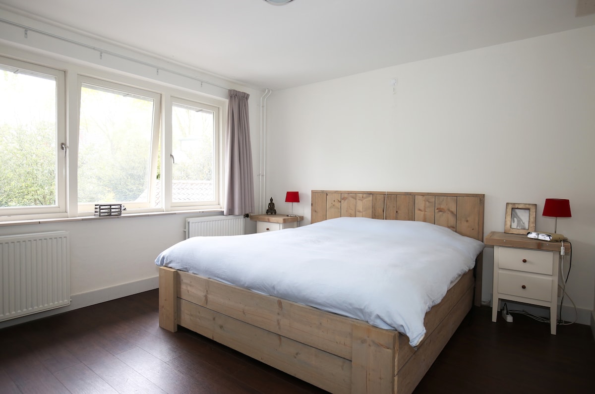 Upon arrival you find a cute Bohemian place & room with a high double bed and a lovely lounge couch beneath. You can use our garden, kitchen and shower anytime & use our Dutch bikes for free. No weird house rules, just feel at home here! Private rooms, rest happily shared with Henkk & sons! At times you might meet other guests. If you are (max) 4 people you could tuse the extra bedroom (big double bed), fee 49€ p/n. Smoking weed is not allowed in/near the apartment. Read the reviews!