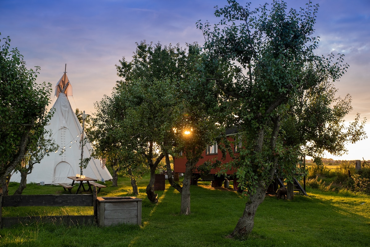 Verblijven in een tipitent is al unieke belevenis, maar in de Sunfield tipi’s waan je je in een droom. Het hele jaar te boeken. Een koudere nacht? Dan maak je gewoon de pelletkachel aan. De Sunfield tipi Sunrise is warm ingericht met Jazzy elementen zoals een Chesterfieldbank. Bij aankomst zijn de bedden opgemaakt en liggen de handdoeken klaar! Koffie en thee is aanwezig en het ontbijt is bij ons altijd inclusief. Direct genieten dus! Vanaf 18 jaar.